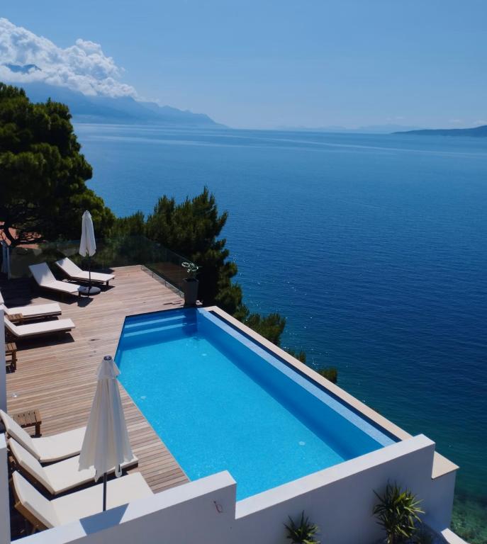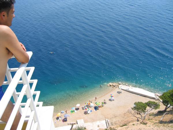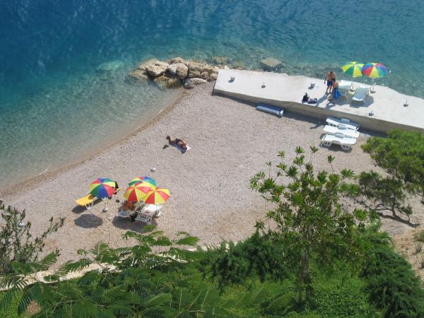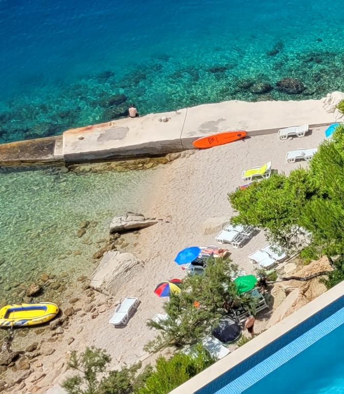 La Villa Ruzmarina, avec sa piscine à débordement, est située juste au-dessus de la plage, accessible par un escalier privé. Elle offre une vue imprenable sur la mer. Chaque appartement, ainsi que chaque chambre, offre une vue magnifique. Deux types d'appartements sont proposés : l'un avec deux chambres et un salon, l'autre avec une chambre et un salon. Chaque appartement bénéficie d'un accès à la piscine, à la salle de sport et à un parking gratuit. Sur la plage, le prix comprend deux transats et un parasol réservés à chaque appartement.