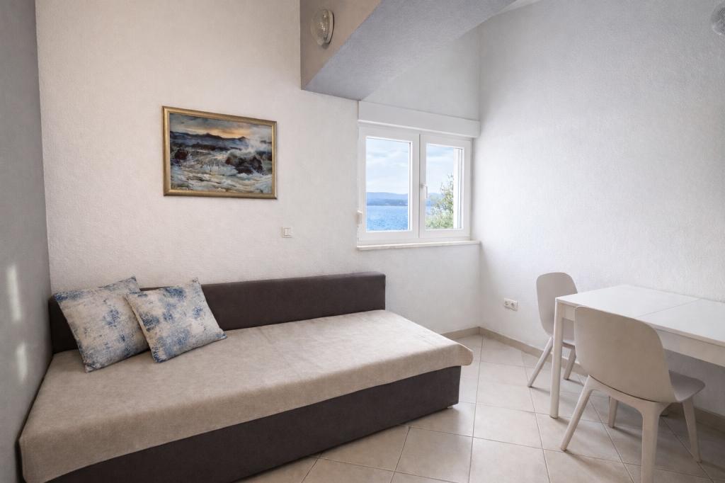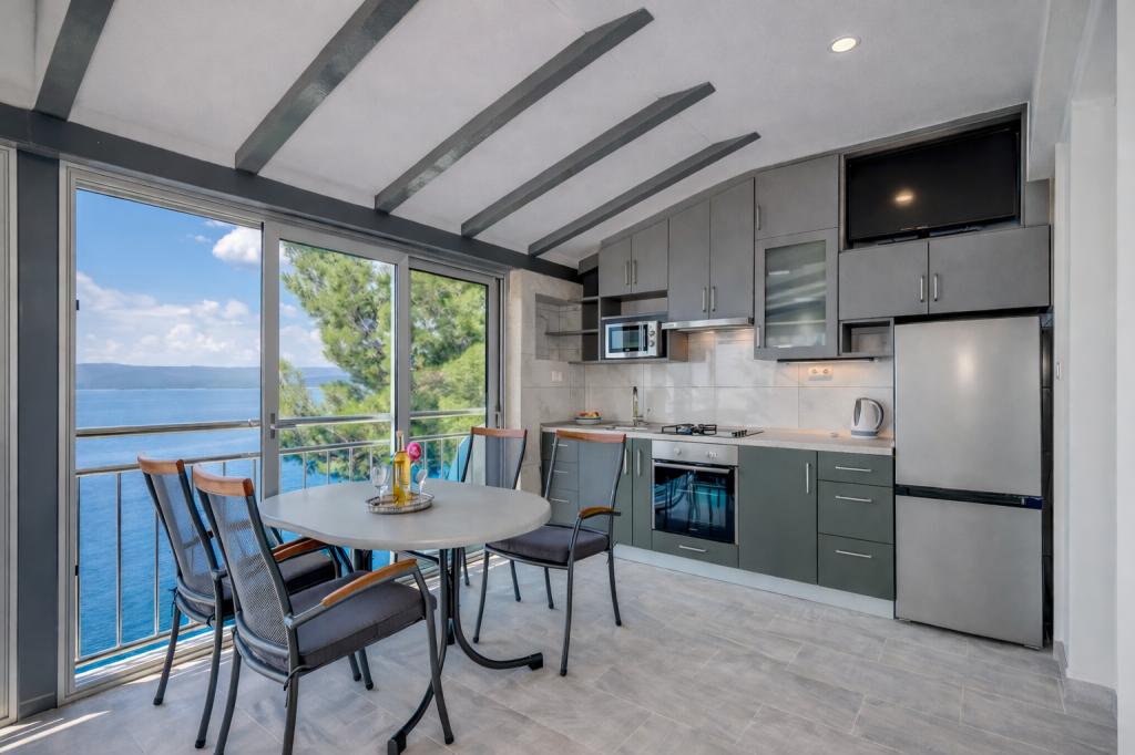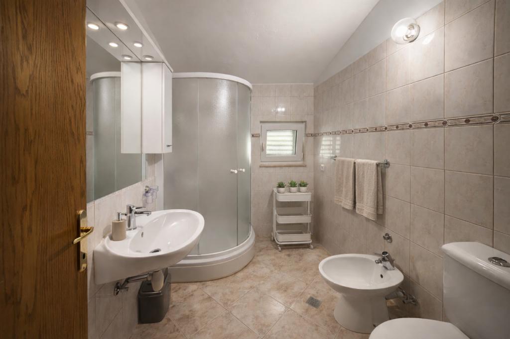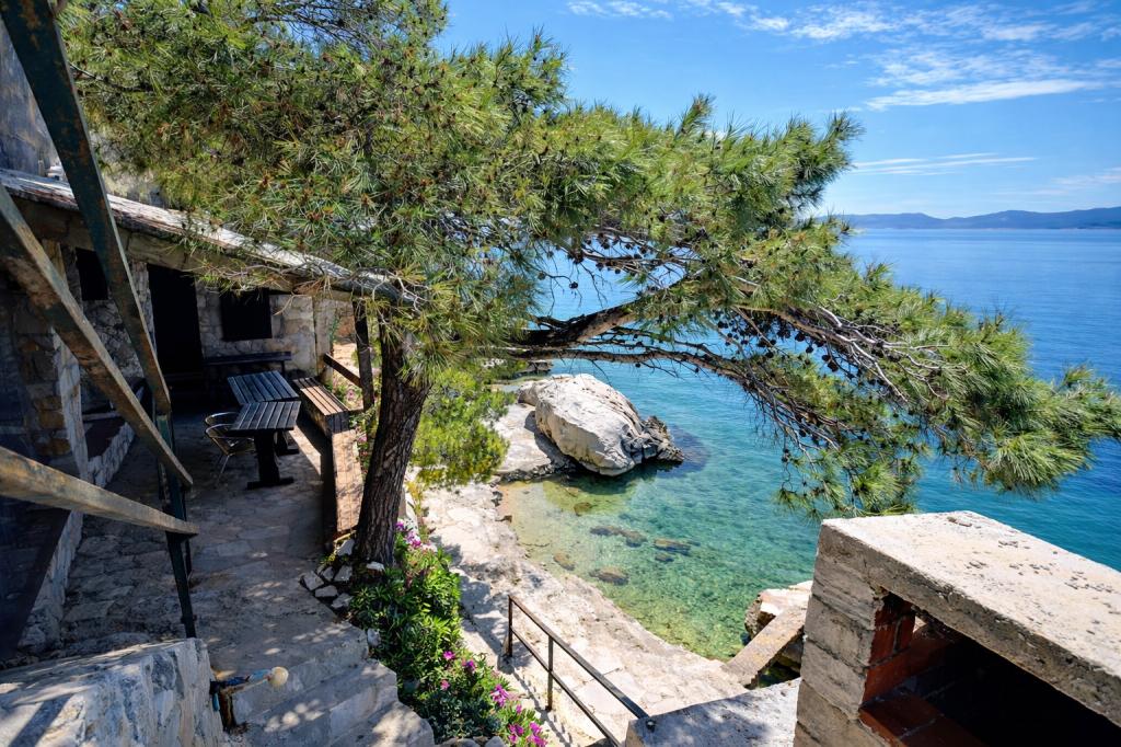 Une maison familiale de trois appartements se situe dans le paisible village de Marušići, idéale pour les vacanciers en quête de détente, d'intimité et de proximité avec la mer. Située en première ligne de mer et entourée de verdure, la propriété offre une atmosphère agréable loin de l'agitation urbaine. C'est un excellent choix pour les couples, les groupes d'amis et les familles souhaitant passer des vacances paisibles au bord d'une mer cristalline et au cœur d'une nature préservée. En raison de l'escalier d'environ 200 mètres menant à la plage, la propriété n'est pas adaptée aux personnes à mobilité réduite, aux bébés, aux personnes âgées ou aux personnes handicapées. Un parking privé est mis à la disposition des vacanciers, pour un arrivée et un séjour en toute sérénité.