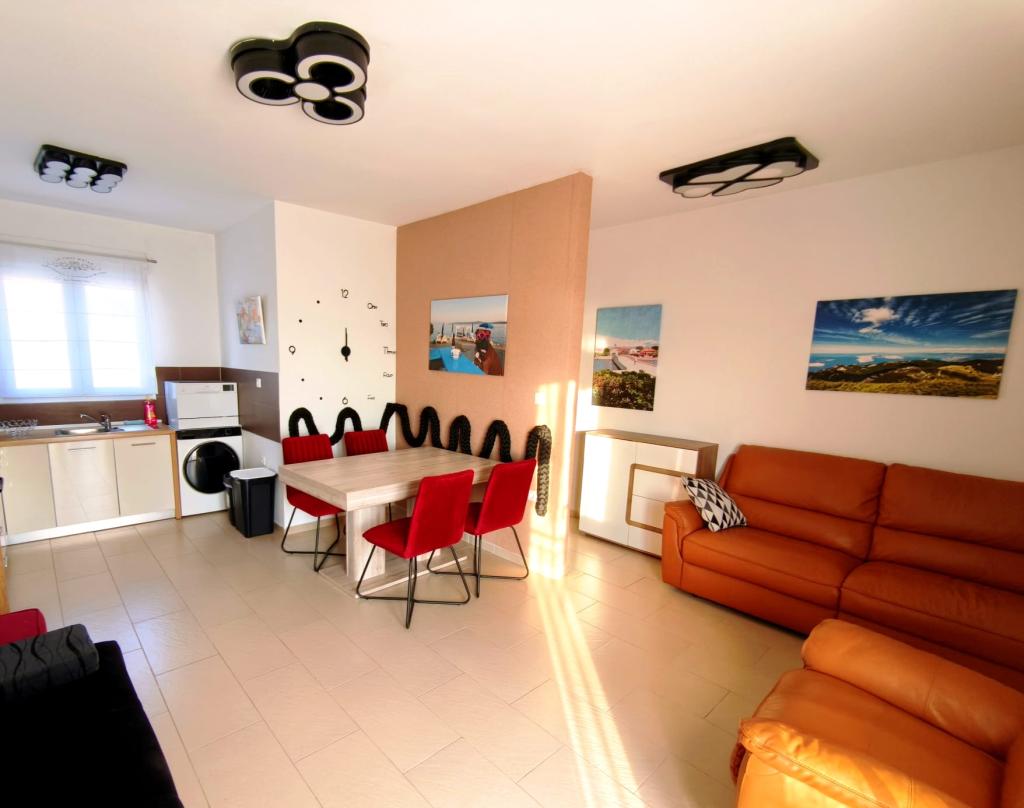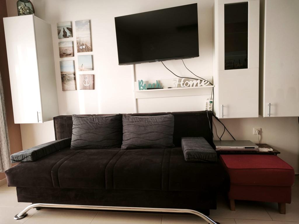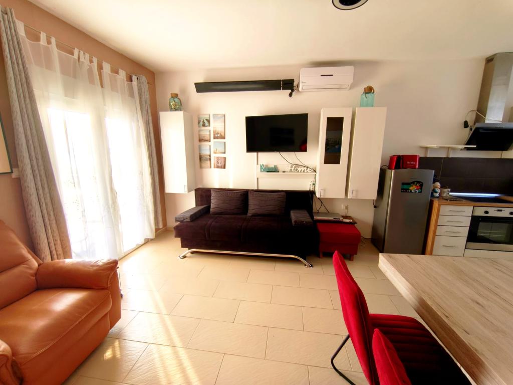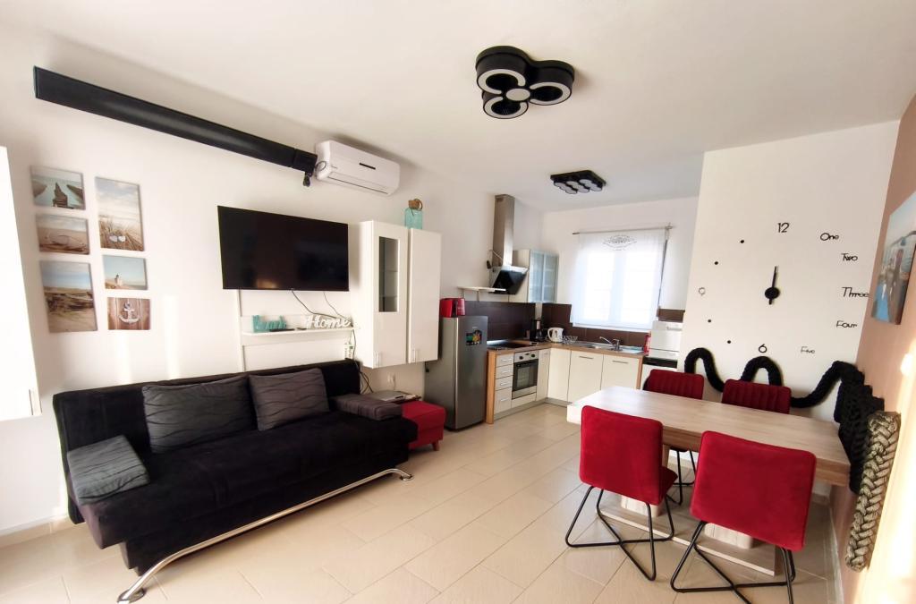 Appartement entièrement meublé situé au rez-de-chaussée. Il comprend une chambre avec un lit double, une cuisine ouverte sur le coin repas, des toilettes et un salon avec deux canapés, dont un convertible en lit d'appoint. Les animaux de compagnie sont acceptés moyennant un supplément et nous mettons à disposition un emplacement pour amarrer un petit bateau.