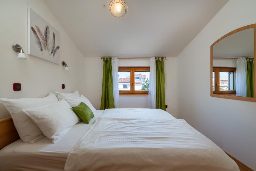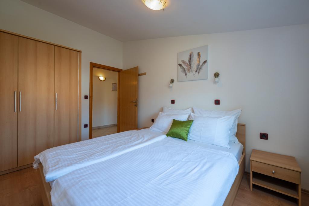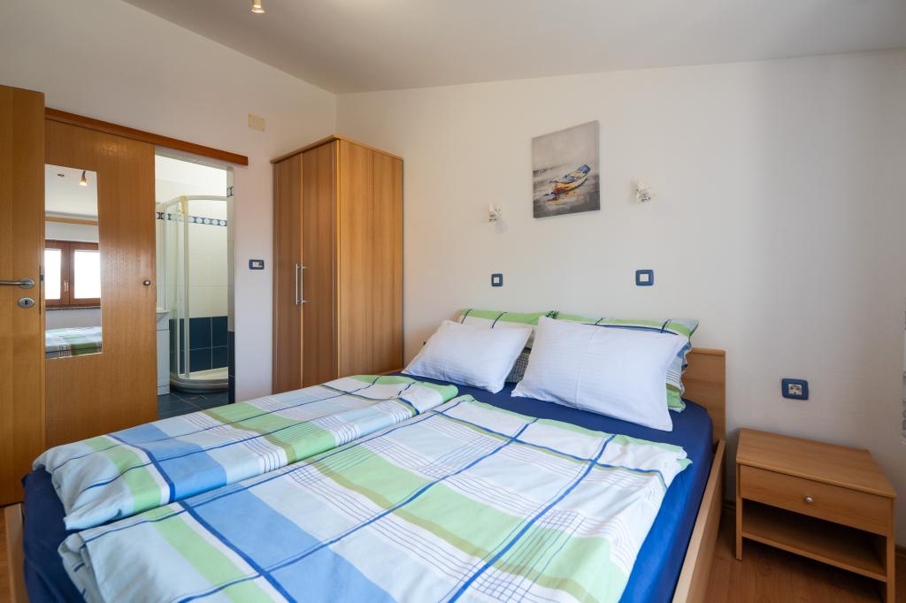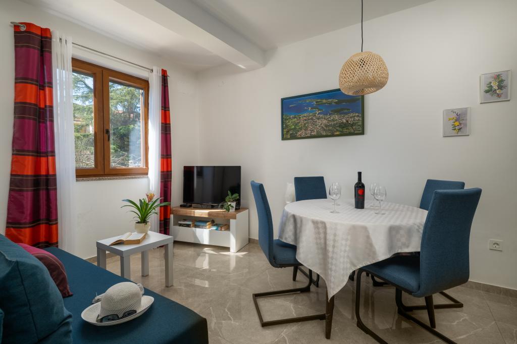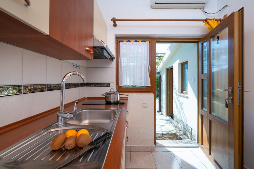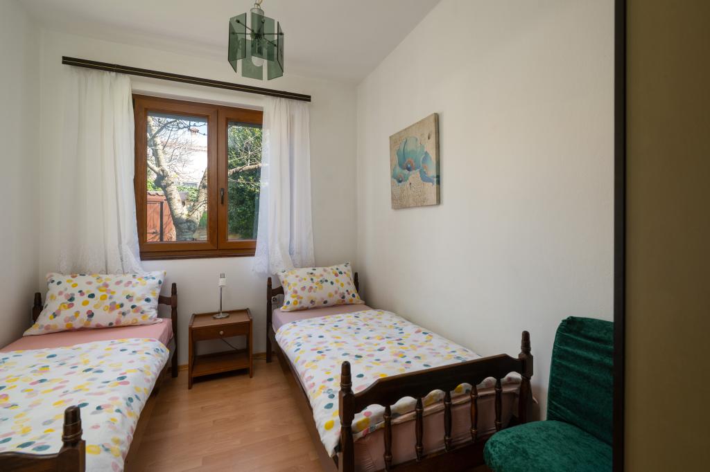 La maison est située dans un quartier calme de Medulin, à 250-300 m de la plage, et dispose d'un grand jardin et d'un parking privé. Quatre appartements modernes et entièrement équipés sont disponibles à la location. Deux appartements se trouvent au rez-de-chaussée : l'appartement n° 1 comprend deux chambres, une cuisine, un séjour, une salle de bains et une terrasse ; l'appartement n° 2 comprend une chambre, une cuisine, une salle de bains et une terrasse donnant sur le jardin. Au deuxième étage, l'appartement n° 3 comprend deux chambres, une cuisine, un séjour, une salle de bains et un balcon ; l'appartement n° 4 comprend une chambre, une cuisine ouverte sur le séjour, une salle de bains et un balcon. Tous les appartements sont climatisés et équipés d'une connexion Wi-Fi et de la télévision par satellite. Le prix comprend le linge de lit, les serviettes, la taxe de séjour et les frais d'enregistrement. Chaque appartement dispose d'une place de parking privative, d'un jardin et d'un barbecue portable. La location d'un lave-linge est de 5 € et celle d'un lit d'appoint de 10 €. Le parking et la cour sont sous vidéosurveillance.