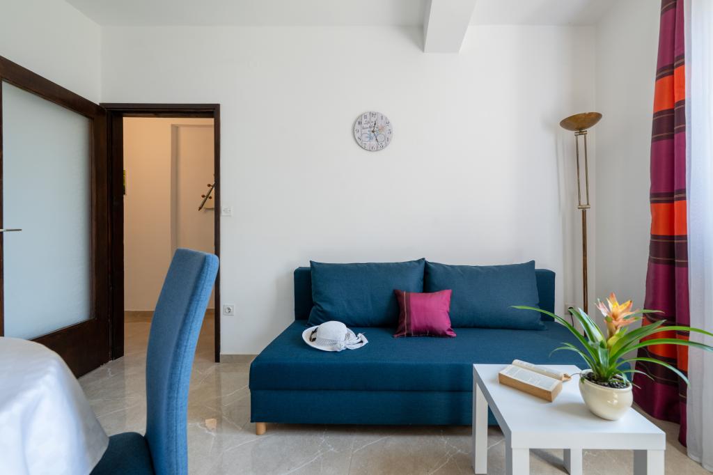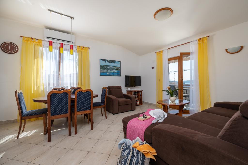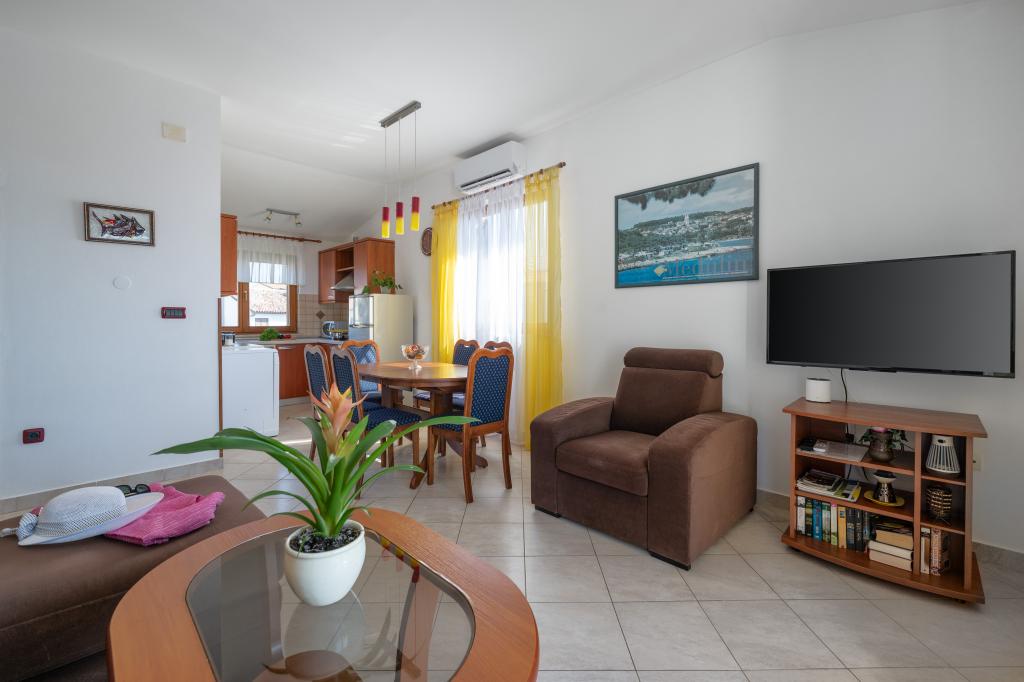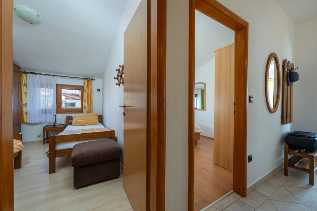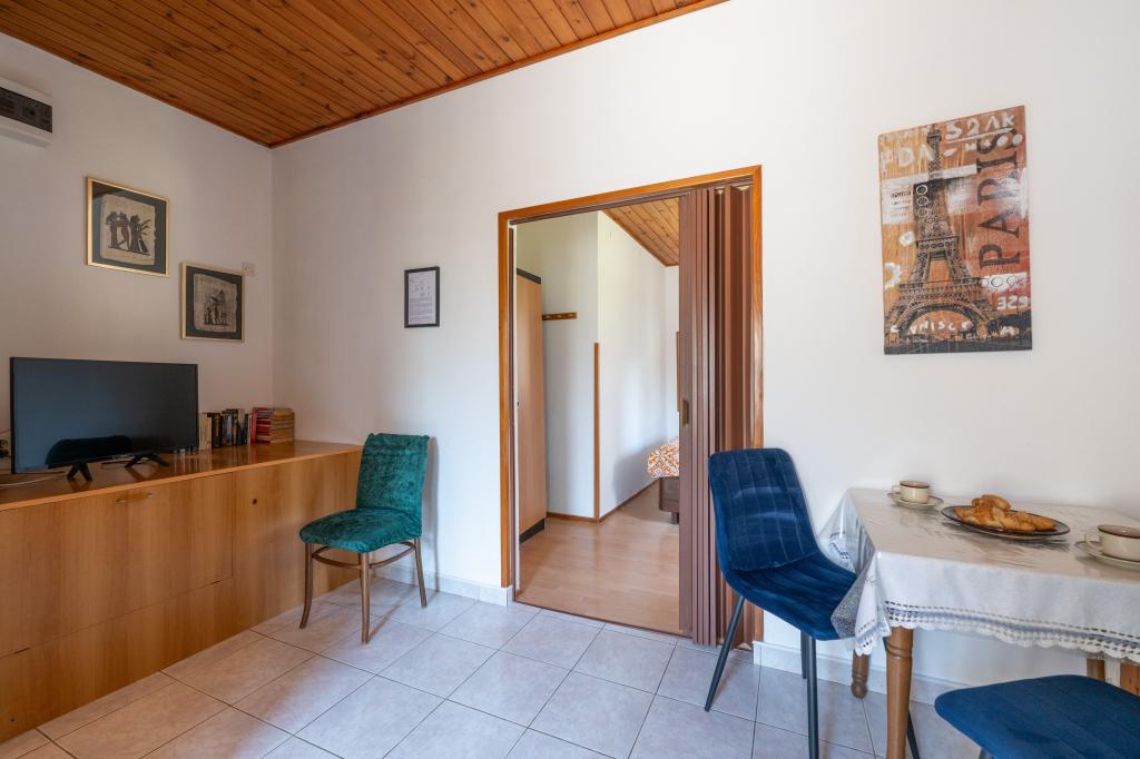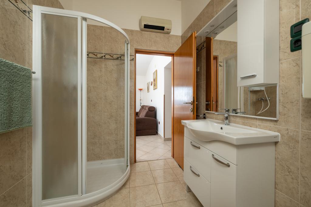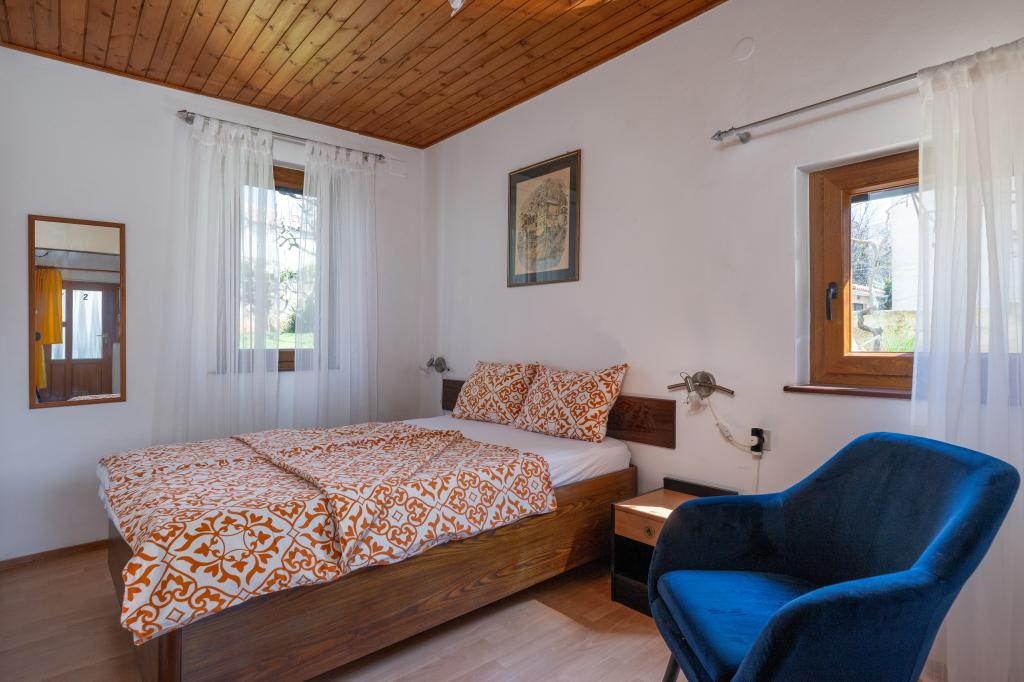 La maison est située dans un quartier calme de Medulin, à 250-300 m de la plage, et dispose d'un grand jardin et d'un parking privé. Quatre appartements modernes et entièrement équipés sont disponibles à la location. Deux appartements se trouvent au rez-de-chaussée : l'appartement n° 1 comprend deux chambres, une cuisine, un séjour, une salle de bains et une terrasse ; l'appartement n° 2 comprend une chambre, une cuisine, une salle de bains et une terrasse donnant sur le jardin. Au deuxième étage, l'appartement n° 3 comprend deux chambres, une cuisine, un séjour, une salle de bains et un balcon ; l'appartement n° 4 comprend une chambre, une cuisine ouverte sur le séjour, une salle de bains et un balcon. Tous les appartements sont climatisés et équipés d'une connexion Wi-Fi et de la télévision par satellite. Le prix comprend le linge de lit, les serviettes, la taxe de séjour et les frais d'enregistrement. Chaque appartement dispose d'une place de parking privative, d'un jardin et d'un barbecue portable. La location d'un lave-linge est de 5 € et celle d'un lit d'appoint de 10 €. Le parking et la cour sont sous vidéosurveillance.