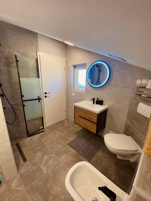 Le logement est situé dans le cadre agréable de la nature istrienne, qui crée un environnement magique et offre aux clients confort et paix pour des vacances de qualité. À seulement 3 km se trouve la belle plage de sable de Bjeca, connue pour sa beauté et sa mer cristalline. Dans les environs immédiats, vous trouverez également un parc d'adrénaline à seulement un kilomètre. De plus, la destination incontournable des amoureux de nature intacte, le parc national de Kamenjak, se trouve à seulement 15 km. Ce parc enchante par son paysage charmant, ses plages pittoresques et sa riche flore et faune, offrant une expérience extraordinaire à tous les visiteurs. L'aéroport de Pula est à 13 km. A proximité se trouve également le célèbre amphithéâtre de Pula, qui attire ceux qui s'intéressent à l'histoire et à la culture de la région. Quels que soient vos intérêts et vos souhaits, cet hébergement, grâce à sa proximité avec la beauté naturelle, les sites touristiques et son confort, vous garantira une expérience inoubliable pendant votre voyage.