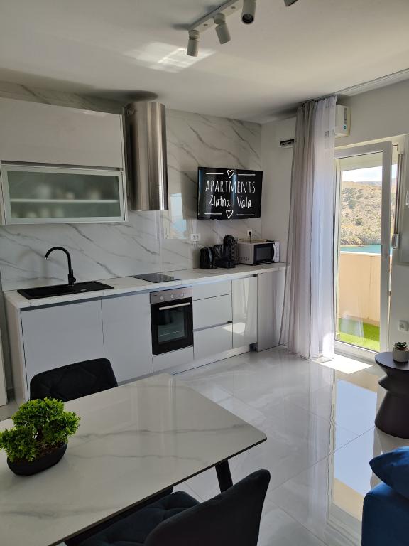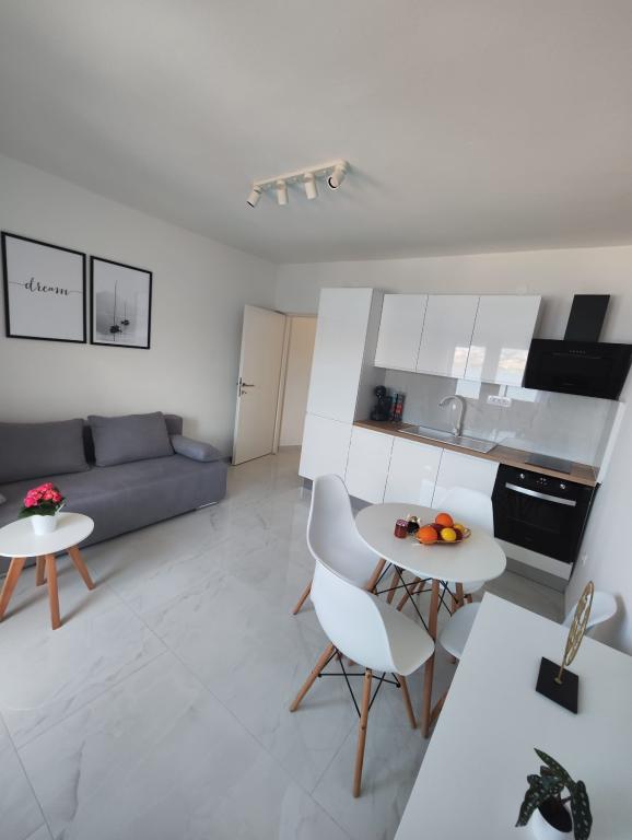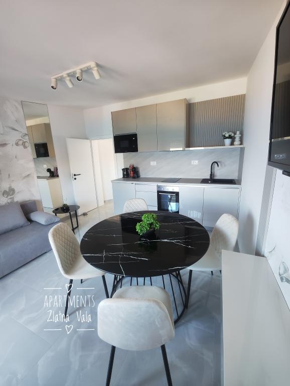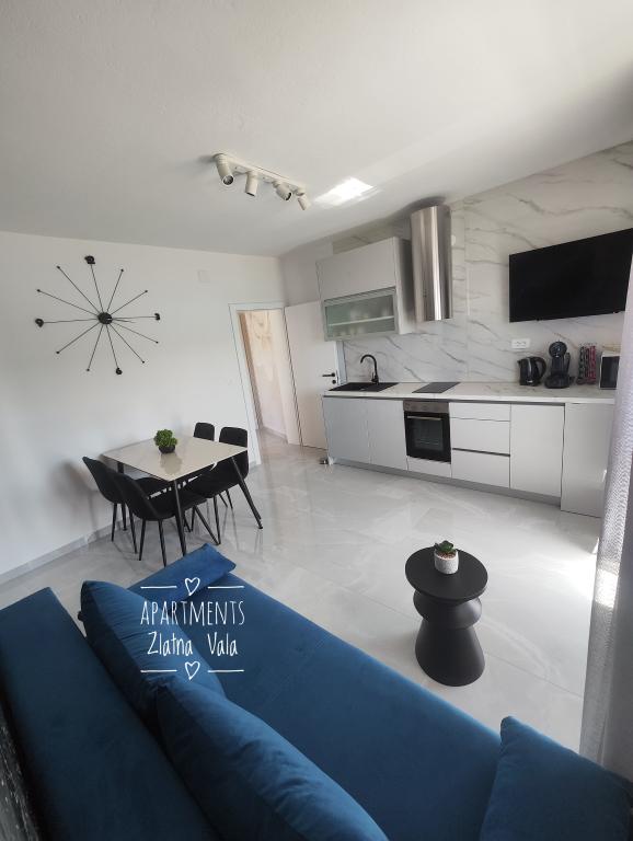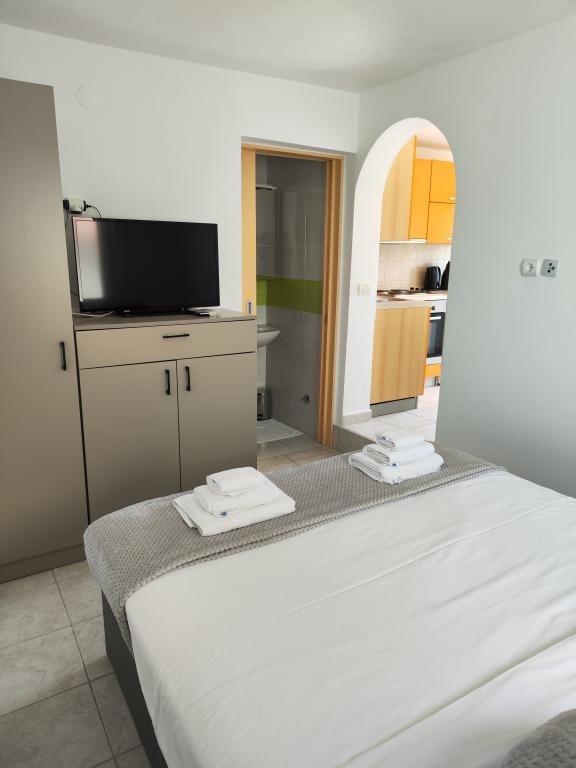 Nous partons en vacances en Croatie depuis plusieurs années maintenant. En général, nous testons plusieurs hébergements différents au cours d'un même séjour, et nous devons dire que celui-ci est notre meilleur appartement jusqu'à présent ! L'appartement offre un espace généreux pour une famille de quatre personnes ; nous nous y sommes sentis très à l'aise. Meublé de façon moderne, il dégage une impression de luxe, est d'une propreté irréprochable (il semblait presque neuf) et dispose d'un balcon offrant une vue imprenable sur la plage principale et toute la baie de Metajna, d'où nous avons pu admirer le coucher de soleil presque tous les soirs. L'appartement est parfaitement équipé. Outre des appareils électroménagers pratiques comme un lave-vaisselle, une plaque à induction, la climatisation, le Wi-Fi (avec un signal puissant), il dispose également d'une machine à café et d'un aspirateur balai, particulièrement appréciés des familles avec enfants. Nous avons reçu un stock illimité de pastilles pour lave-vaisselle et de capsules de café. Juste à côté de l'appartement, vous pourrez utiliser deux types de barbecues et vous détendre dans des hamacs sur la terrasse. Pendant notre séjour, les hôtes nous ont également prêté leurs planches de paddle, ce qui nous a permis de nous initier au paddle. Les appartements disposent également d'un grand parking juste au-dessus de l'immeuble. Tous ces détails contribuent au confort général et à l'agréable sensation de séjour. Le jour de notre arrivée, nous avons trouvé sur la table un sac cadeau contenant des confitures maison préparées par nos hôtes. Quelle agréable surprise ! Nos hôtes ont été très agréables et communicatifs dès le premier instant. Ils nous ont aidés sans problème et ont toujours été disponibles pour nous satisfaire. Durant notre séjour, notre hôtesse nous a fait la surprise à deux reprises de nous offrir une assiette de crêpes fraîches et un délicieux gâteau. La plage la plus proche se trouve à seulement 2 minutes à pied, en descendant les rues de Metajna, la plage principale. Derrière une petite colline se trouve la magnifique plage de Ručica. Je vous recommande d'y louer un pédalo et d'aller voir la plage voisine de Beritnica, surplombée par de magnifiques formations rocheuses de grès. Au coucher du soleil, nous avons apprécié la promenade le long du se