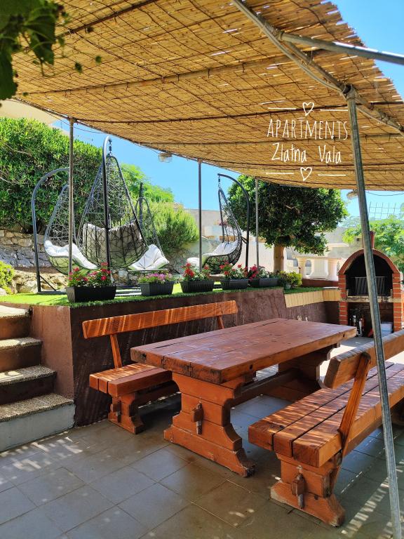 Les appartements Bingula sont situés sur une petite colline appelée Glavica, à 150 m de la mer et du centre de Metajna. La proximité du centre et de la mer permet à nos clients d'être au milieu d'événements en peu de temps, et aussi de se retirer dans la paix que notre site offre. Pour nos clients, il y a plusieurs terrasses avec barbecue commun, et pour les plus jeunes, nous avons une petite aire de jeux pour que les parents puissent se détendre de manière illimitée. Tous les appartements sont entièrement et modernement équipés: cuisine avec salon, salle de bains avec WC, air conditionné, TV satellite, WLAN, balcon avec vue sur la mer .... Pour ceux qui optent pour la demi-pension, nous proposons des spécialités croates et des spécialités internationales avec du pain d'épice croate. Si vous manquez quelque chose, il y a toujours vos hôtes qui seront heureux de venir vous rencontrer. Nous attendons votre arrivée avec impatience, Famille Bingula