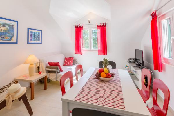 Nouvellement construit appartement moderne dans une baie tranquille sur la côte sud-ouest de l'île. Il est situé à proximité de la mer dans une forêt de pins, loin de l'île de 15 minutes à pied.