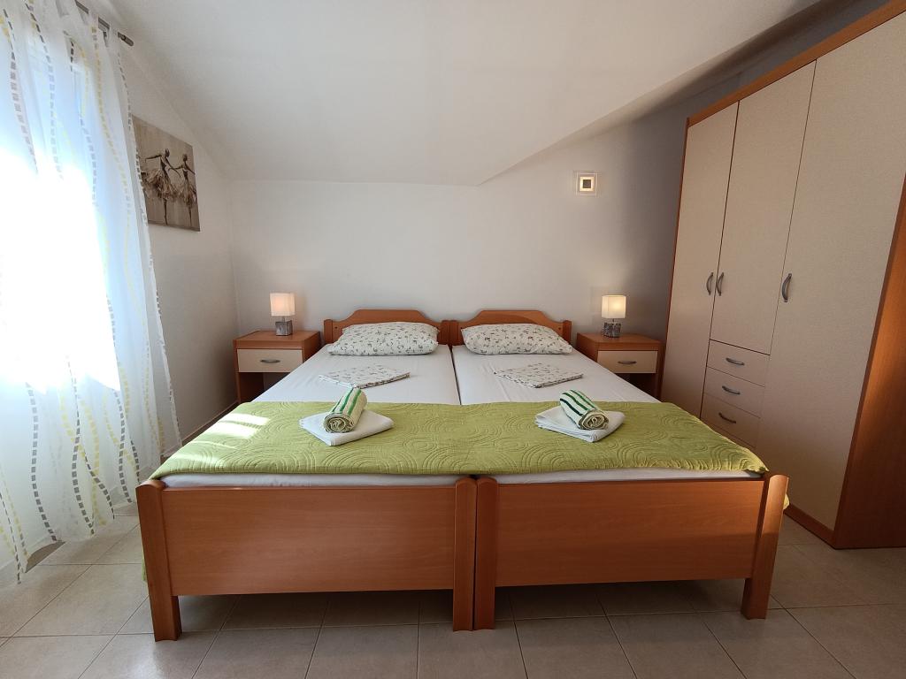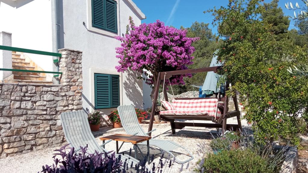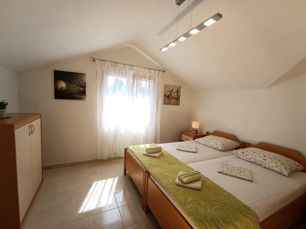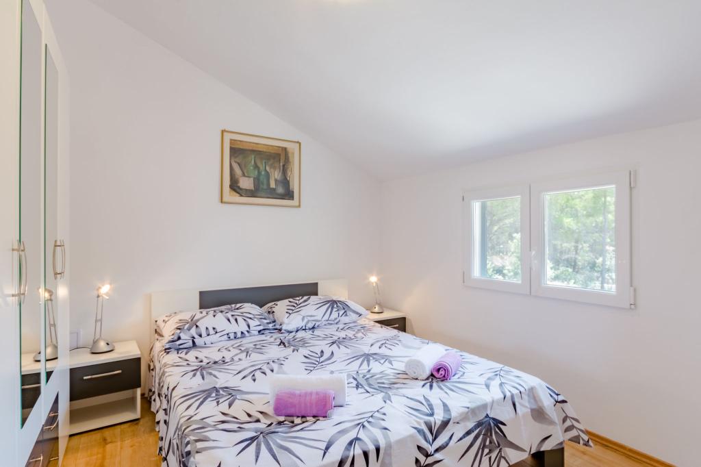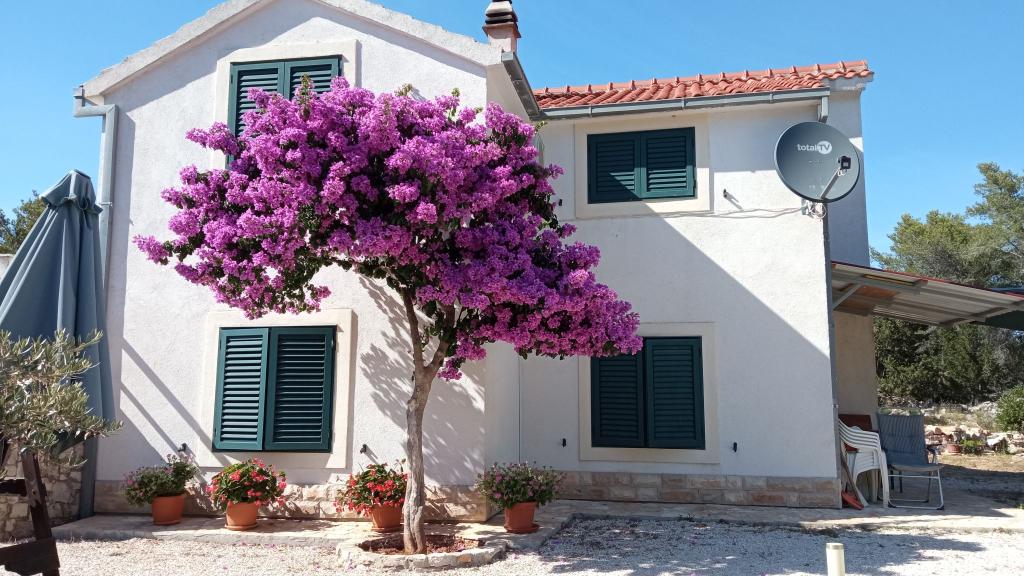 L'appartement Maja se situe au premier étage d'une maison nichée dans un cadre méditerranéen idyllique, au calme, dans la baie d'Osibova, sur la côte sud de l'île de Brač. La maison se trouve à 200 mètres de la mer. D'une superficie de 58 m², l'appartement est accessible par un escalier extérieur. Il comprend deux chambres. L'une est équipée d'un lit double de 160 cm de large, et l'autre de deux lits simples de 90 cm de large, généralement réunis pour former un lit double de 180 cm de large. Ces lits peuvent être séparés sur demande. L'appartement est climatisé grâce à deux climatiseurs, un dans la chambre et l'autre dans le salon. Les hôtes bénéficient de la télévision par satellite, d'une connexion Wi-Fi gratuite et d'un parking. L'appartement dispose également d'un jardin avec une cour et une véranda couverte (gazebo) aménagée avec un coin repas, un barbecue, un évier extérieur et tous les équipements nécessaires. Une douche extérieure avec eau chaude et froide est également à disposition. Les commerces et restaurants se trouvent dans la ville de Milna, à environ 2 km des appartements.