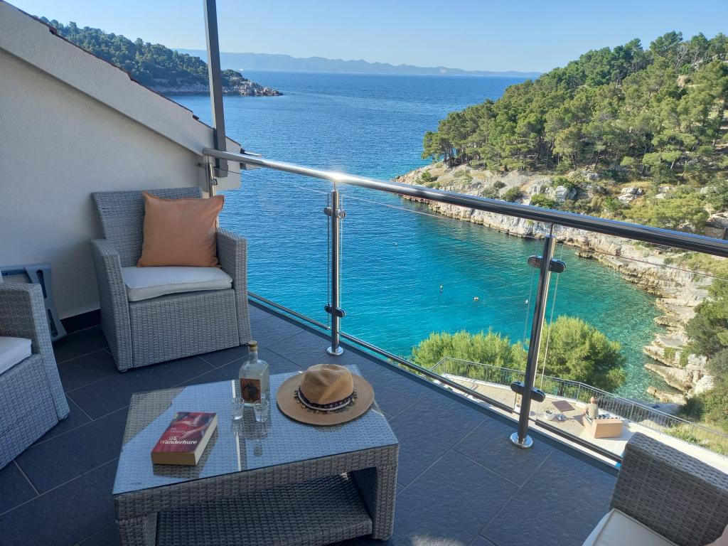 Notre maison nouvellement construite est située au premier rang de la mer dans la petite baie abritée d'Osibova, au nord-ouest de Brac. L'établissement dispose de cinq appartements entièrement meublés de façon moderne. La plage n'est qu'à environ 20 mètres.Pour votre animal de compagnie, nous avons une place de parking couverte non loin de l'immeuble. Si vous venez en bateau, nous avons réservé une place pour votre remorque. Bien sûr, nous avons aussi un barbecue. Chaque terrasse ou balcon est également meublé. . Une promenade facile de 30 minutes vous mènera à la petite ville de Milna, où vous trouverez un certain nombre de bons restaurants, des cafés, des promenades et la possibilité d'acheter des produits d'épicerie.