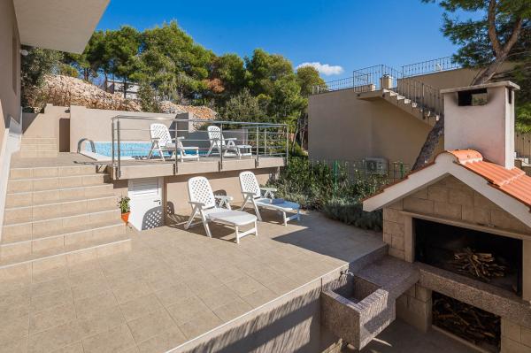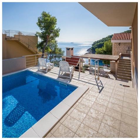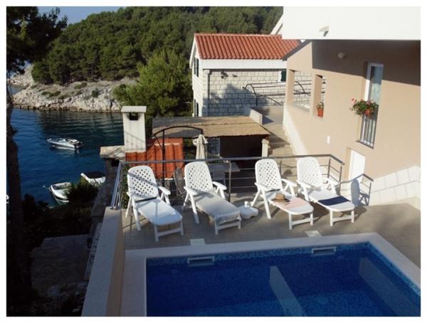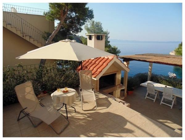 Passez vos vacances dans un appartement en bord de mer dans la baie d'Osibova sur l'île de Brač ! Les appartements BILI sont situés au sud-ouest de l'île de Brač, dans la baie d'Osibova, à 2 kilomètres de la ville de Milna. Notre immeuble avec le jardin occupe une superficie de 400 m² et est situé à environ 25 mètres de la mer. La maison elle-même se compose d'un rez-de-chaussée, d'un premier étage et d'un grenier élevé et dispose de 6 appartements, dont 4 à louer. Vous pourrez utiliser le barbecue et une grande terrasse commune avec vue sur la mer. Il y a un parking juste à côté de la maison. Du côté est de la maison se trouve une piscine de 23 m². Utilisation possible d'une douche extérieure. Sous la maison se trouve un bloc de béton avec des escaliers. Il y a tout l'équipement nécessaire pour amarrer les dériveurs et les bateaux. Des plages de galets et de pierre sont situées à l'intérieur de la baie, à 5 et 10 minutes à pied de l'appartement.