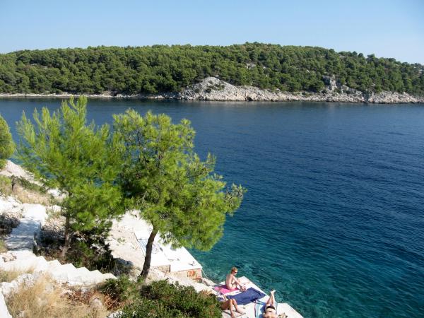 Belle baie aux eaux claires et d'une plage privée où vous pouvez jouir de la paix. Appartement entièrement comme indiqué, propre et équipé avec tout ce dont vous avez besoin en vacances. Surtout souligner à me douche extérieure essentielle et grill avec des chambres supplémentaires. Hôtes (toute la famille) sont pleinement engagées à son travail, toujours à votre service. Recommandation absolue pour ceux qui veulent vraiment prendre une pause du stress et de la foule tous les jours pendant l'année.