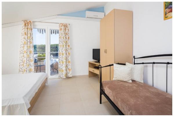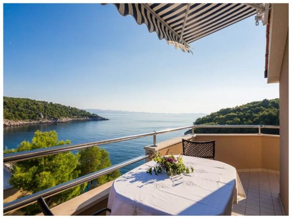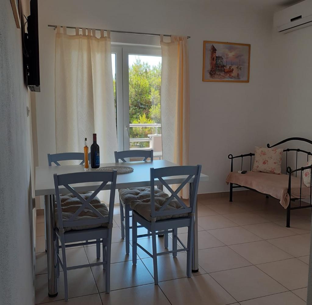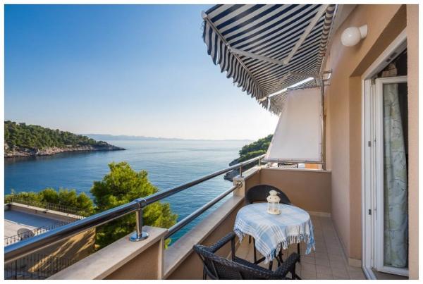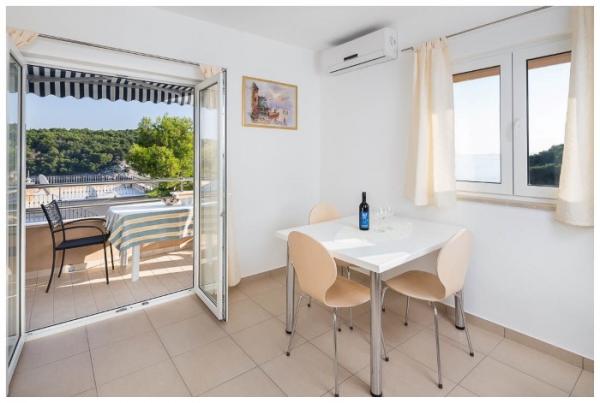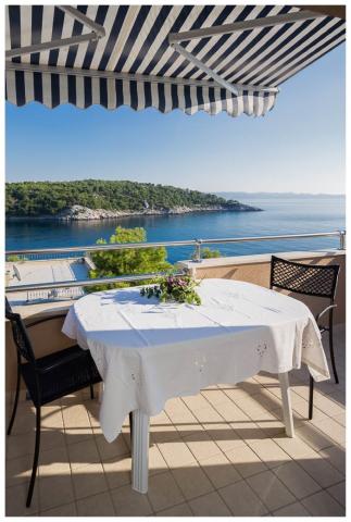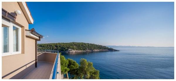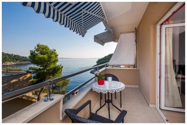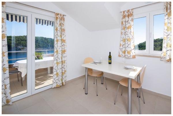 L'appartement est propre et bien rangé, avec un grand balcon offrant une belle vue. La mer est proche, à quelques pas de la jetée. La baie d'Osibova est très agréable, belle et calme. La mer est cristalline.