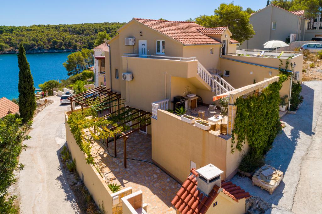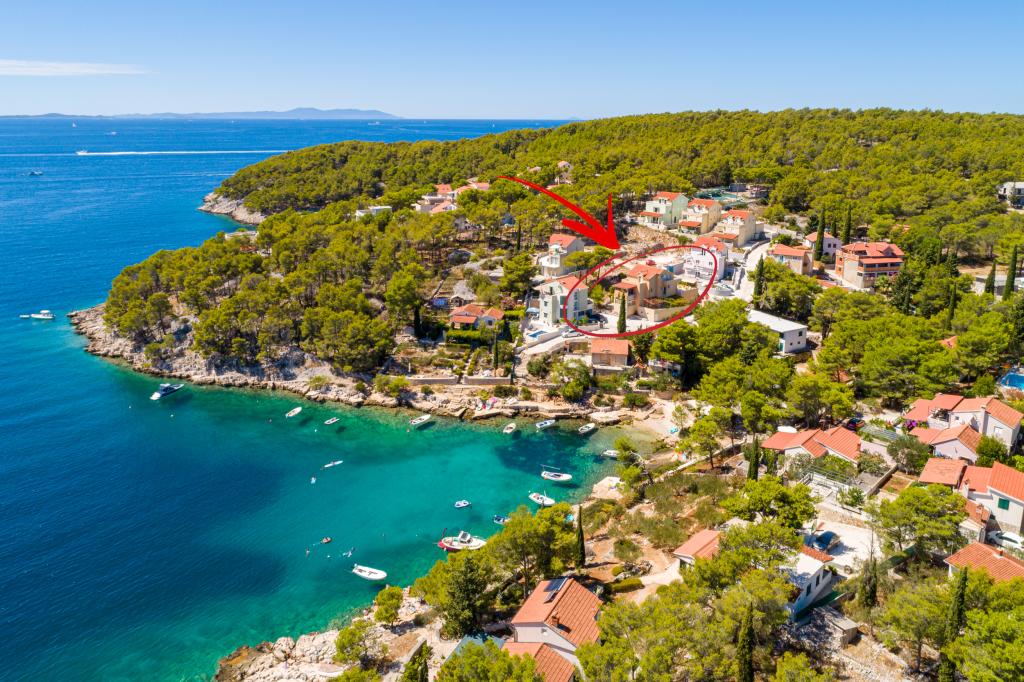 Nous avons séjourné en famille de 5 et avons trouvé notre bonheur : une mer cristalline, une vue magnifique et une immense terrasse pour profiter de jour comme de nuit. L'appartement était très propre et offrait tout le nécessaire pour un séjour relaxant. La petite ville de Milna est à quelques pas et, en voiture, vous trouverez des cafés, des boulangeries, des restaurants et de charmantes petites boutiques ouvertes le soir. L'hôte était très attentionné et serviable, répondant à toutes nos questions pour notre première visite sur cette magnifique île. Nous reviendrons.