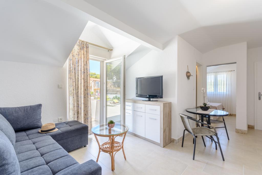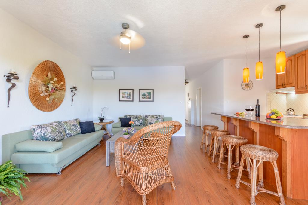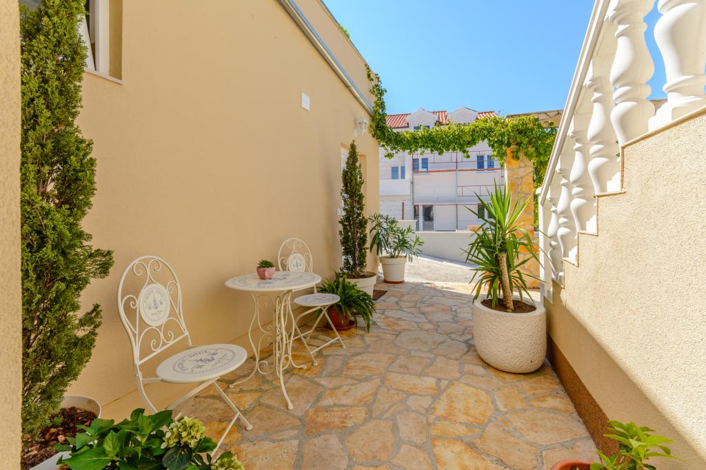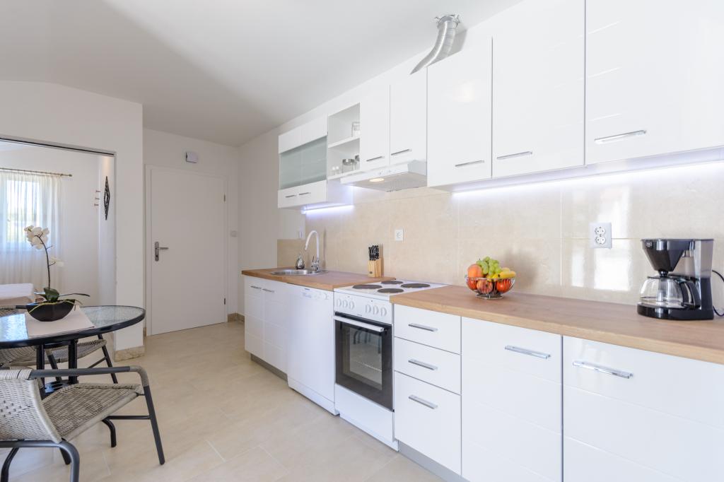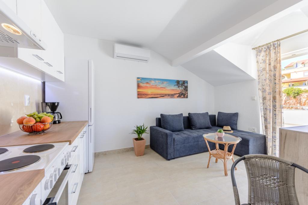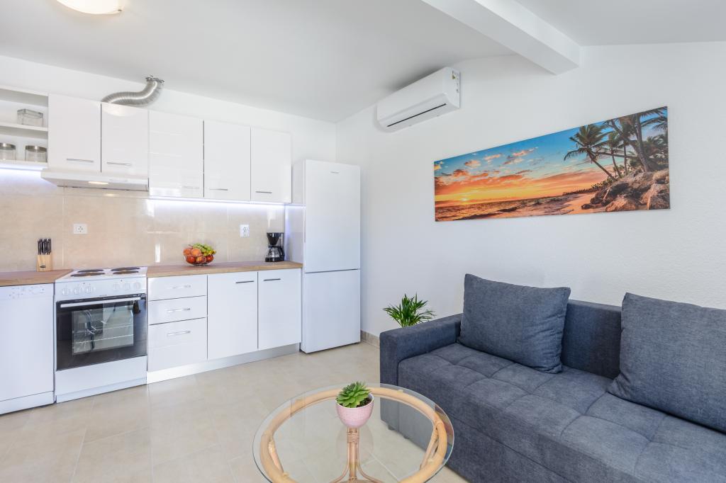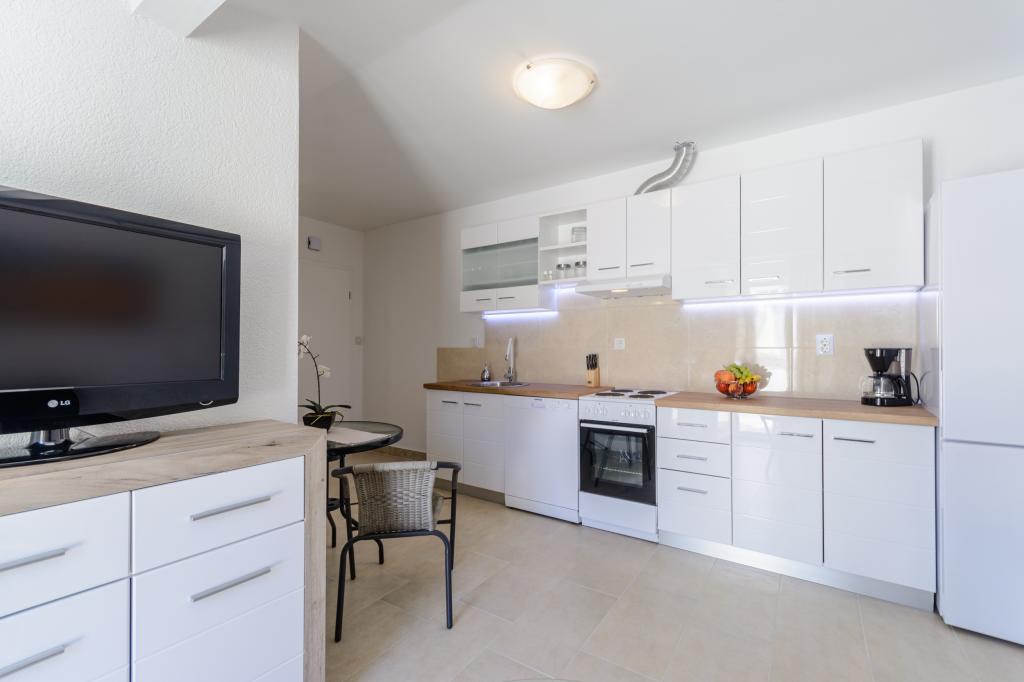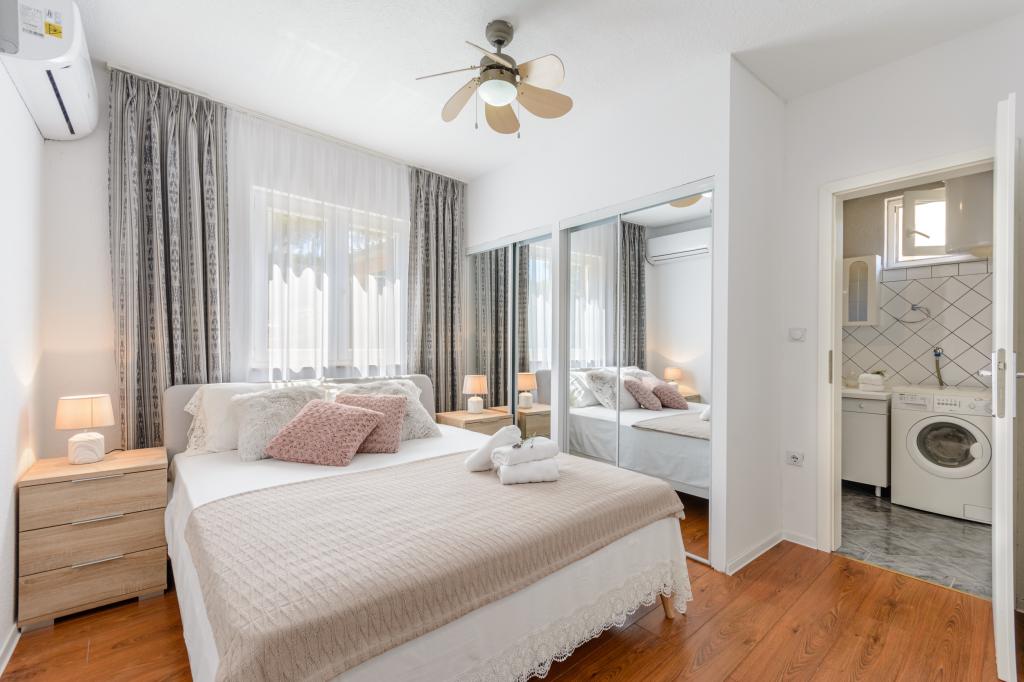 Emplacement idéal, proche de la mer. Grande terrasse avec vue mer. L'appartement est très joliment décoré et propre. Le lit est très confortable. Il dispose de tout le nécessaire. Chaises longues, parasols et serviettes de plage sont fournis. La mer est magnifique et les plages sont bien entretenues et adaptées aux enfants. Mme Ivanka est une personne très sympathique et chaleureuse. Nous la recommandons !