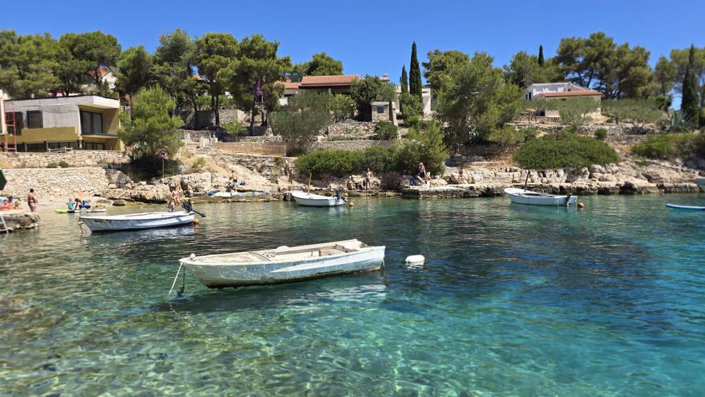 Un endroit calme pour des vacances en famille, un appartement spacieux et joliment meublé, transats et serviettes de plage à disposition des hôtes. La mer est très proche à quelques pas de l'appartement. Le propriétaire est très gentil, à l'écoute. Pour la ville de Milna, marchez environ 30 minutes à travers l'oliveraie. Nous recommandons.