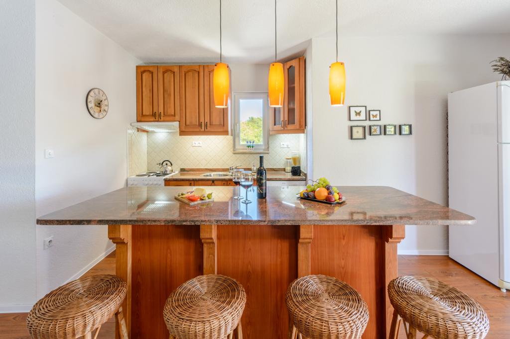 Situés à proximité de la mer, à seulement 28 m de la plage de la baie d'Osibova, ces appartements neufs, luxueux et modernes sont entièrement équipés : climatisation, Wi-Fi, télévision, entrée privée, parking et magnifiques terrasses privatives avec vue sur la mer. Toutes les fenêtres et portes-fenêtres sont munies de moustiquaires. L'appartement n° 1 (4+2 personnes) comprend, outre une cuisine spacieuse, un séjour et une terrasse couverte (12 m²), deux chambres et deux salles de bains attenantes, dont une avec lave-linge. L'appartement n° 2 (2+2 personnes) dispose d'une chambre, d'une salle de bains, d'une cuisine, d'un séjour et d'une vaste terrasse (30 m²) partiellement ombragée par de la vigne. Les appartements sont équipés de matelas haut de gamme, de draps et de serviettes en satin, d'un sèche-cheveux et d'un fer à repasser. La cuisine est entièrement équipée : vaisselle, verres, ustensiles de cuisine et de table, lave-vaisselle, grand réfrigérateur-congélateur, plaque de cuisson avec four, cafetière, grille-pain, micro-ondes et bouilloire. Les clients ont accès gratuitement à des serviettes, des transats et des parasols pour la plage, ainsi qu'à une machine à laver et à un barbecue à gaz.