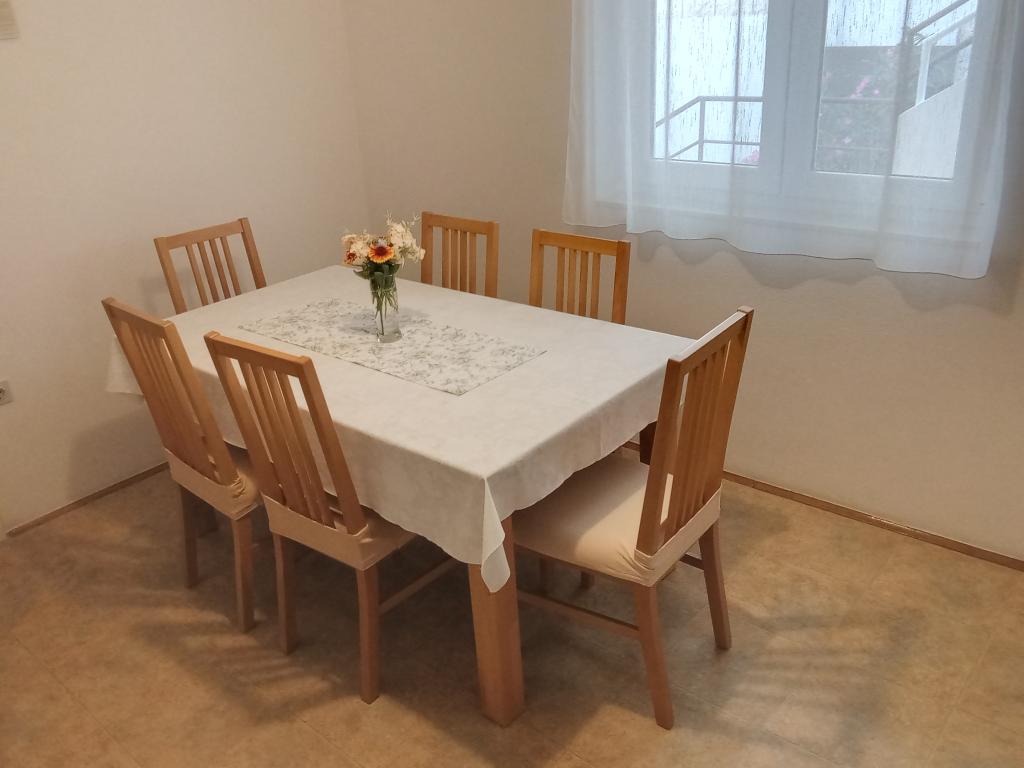 Taxe de sejour est inclus dans le prix.Appartement A6 2 a 3 grandes chambres, 3 salles de bains, une grande cuisine et une grande terrasse. Toutes les chambres disposent d'un balcon avec vue sur la mer. La cuisine est entièrement équipée, avec une grande table à manger à l'intérieur et à l'extérieur. Appartement A2 2 est un studio confortable avec deux lits supplémentaires, salle de bains, cuisine et terrasse. Parking sur place.