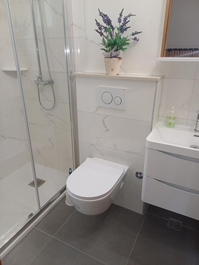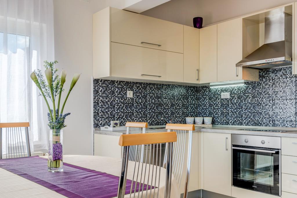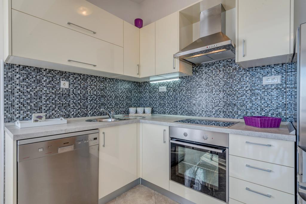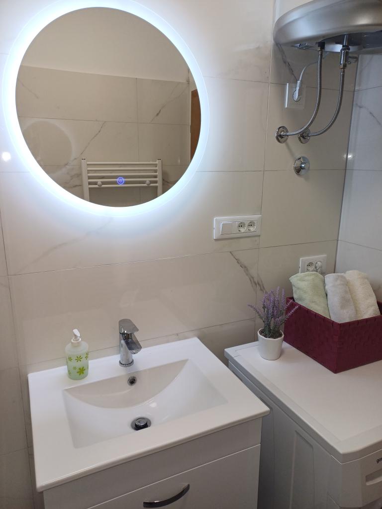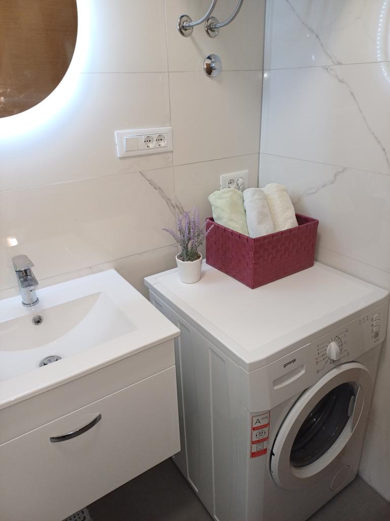 Il y a un appartement moderne et spacieux dans une maison familiale près de la mer à Mimic. L'appartement (6+1) se compose de trois chambres, deux salles de bains, une cuisine, un salon, une salle à manger et un balcon avec une belle vue.