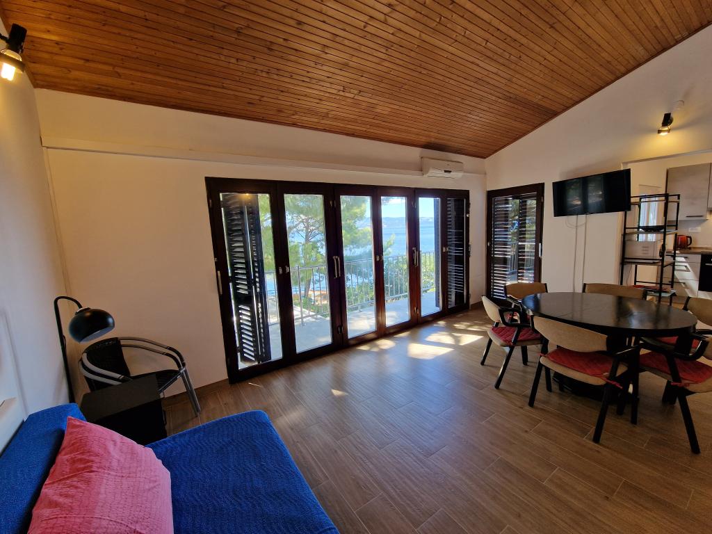À seulement 50 m d'une belle plage de galets, en première ligne de mer. A1- (51640) L'appartement peut accueillir 6 personnes. Les lits sont répartis dans 3 chambres, sur une superficie de 56 m². Terrasse de 18 m². Vue sur la mer depuis la forêt de 350 m². Deux salles de bains. Barbecue commun. La cuisine est équipée d'un lave-vaisselle. A2- (51641) L'appartement peut accueillir 5 personnes. Les lits sont répartis dans 2 chambres et dans la salle à manger, sur une superficie de 73 m². Balcon de 17 m² avec vue sur la mer. Barbecue commun. Lave-linge et lave-vaisselle sont à disposition. A3- (64424) L'appartement dispose de 2 lits dans le séjour avec cuisine et de 2 lits dans la chambre. Le séjour avec cuisine fait 22 m², la chambre 7 m², la salle de bains 5 m². La cuisine est équipée d'un lave-vaisselle. Barbecue commun. Grande terrasse (35 m²) avec vue sur la mer.