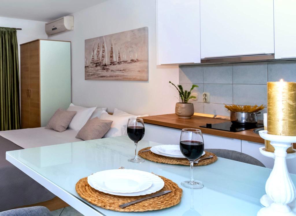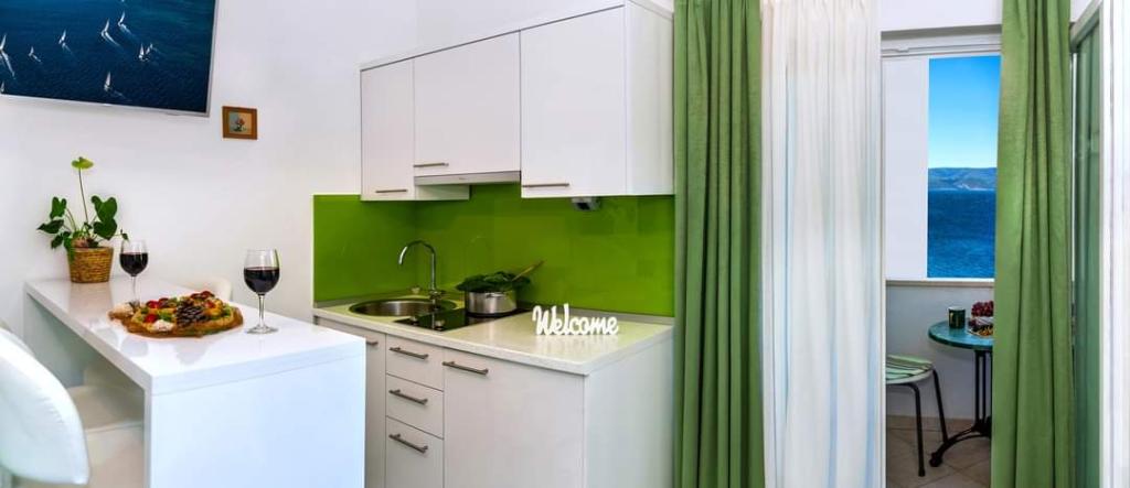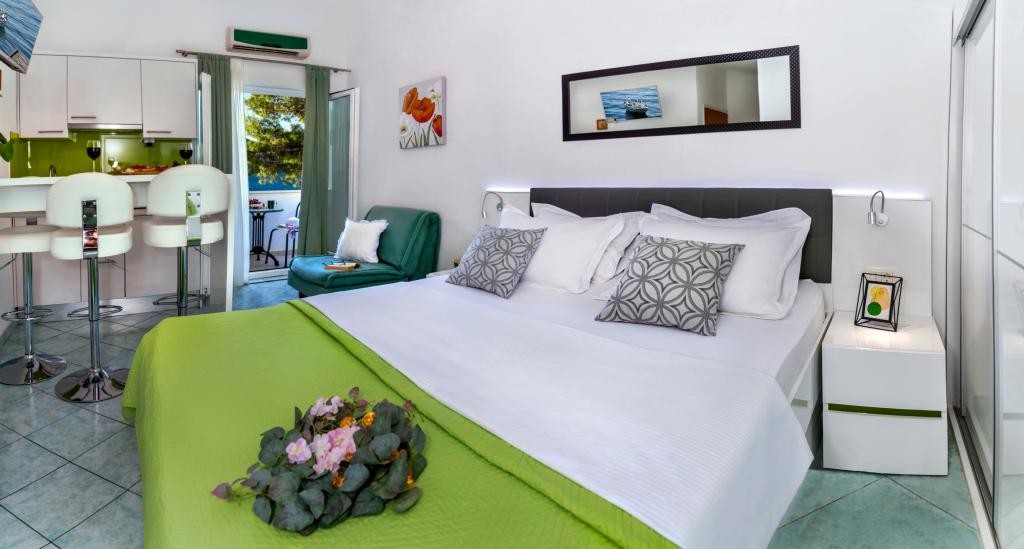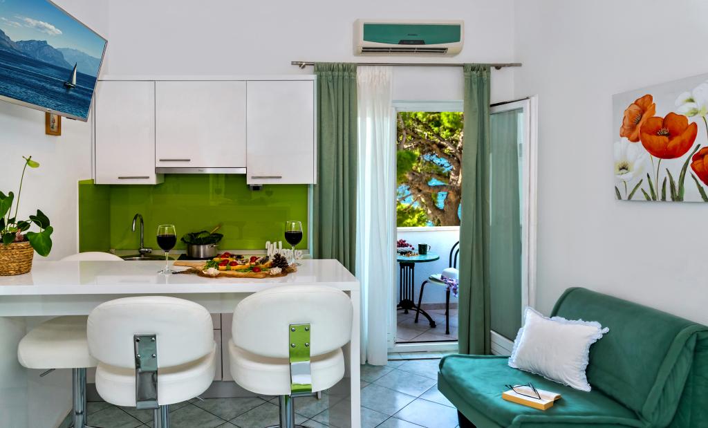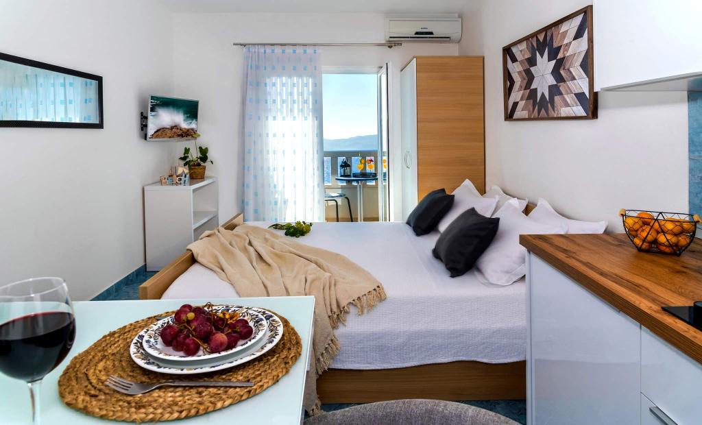 Hier nous sommes rentrés de ce bel endroit calme et agréable pour se reposer. L'appartement est bien équipé, la vue depuis le balcon est magnifique, les terrasses environnantes sont magnifiques, à quelques pas d'une belle petite plage calme. Les hôtes sont des gens agréables et honnêtes. Ils travaillent dur autour de chaque invité. De vraies vacances pour l'âme. Merci