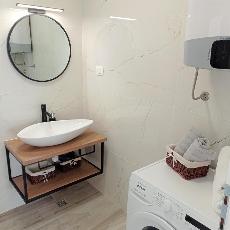 Nous y sommes allés deux fois, le logement est magnifique, propre, entièrement équipé avec climatisation dans chaque pièce, un lave-vaisselle et ce que j'apprécie le plus c'est la machine à laver. Mirko, Danijela et leur mère sont des gens merveilleux, gentils, toujours souriants et serviables. La vue depuis la terrasse est irremplaçable. Je n'ai rien à critiquer. L'avantage est que vous reviendrez avec une silhouette tonique, car la route depuis la plage est assez vallonnée, mais je pense que c'est aussi un avantage.
