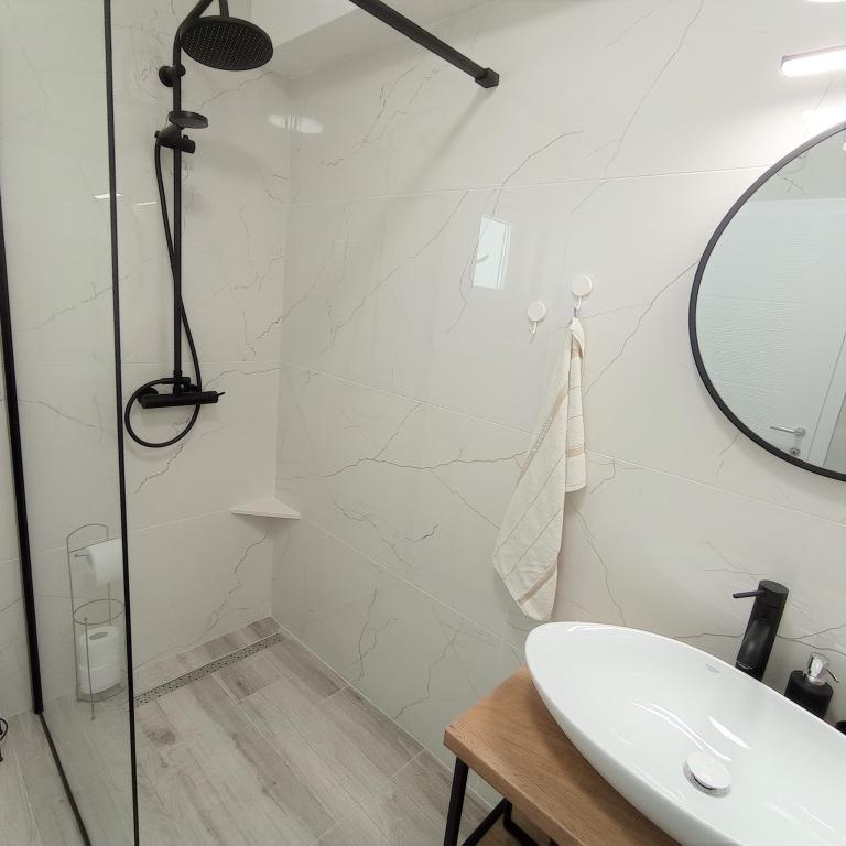 Je suis ravie du séjour de cette année en Croatie dans l'appartement de Danijela et Mirko ! Appartement rénové et super meublé, équipé. La disposition de la chambre et des deux salles de bains a permis le fonctionnement confortable de deux familles dans l'appartement. Une terrasse parfaitement située avec vue sur la mer - non adjacente à d'autres terrasses donnait un sentiment d'intimité comme dans une maison indépendante. Des hôtes très sympathiques, avec qui nous avons eu une très bonne communication dès le début de la réservation et du paiement anticipé. Ils nous ont chaleureusement accueillis avec de l'orahovica maison, et à la fin du séjour nous avons eu droit à de délicieuses crêpes préparées par la mère de Mirko et du rakija maison :) À la belle plage la plus proche et adaptée aux enfants à pied jusqu'à 10 minutes ! À proximité de la plage, vous trouverez de jolis bars et pubs avec une ambiance, une très bonne cuisine et un excellent service, comme le bar-restaurant Emi. A proximité, le vieux centre de Mimic avec un joli restaurant de poisson, Carevi Dvori, vaut également le détour. Dans l'ensemble, c'est un endroit parfait pour des vacances reposantes :)