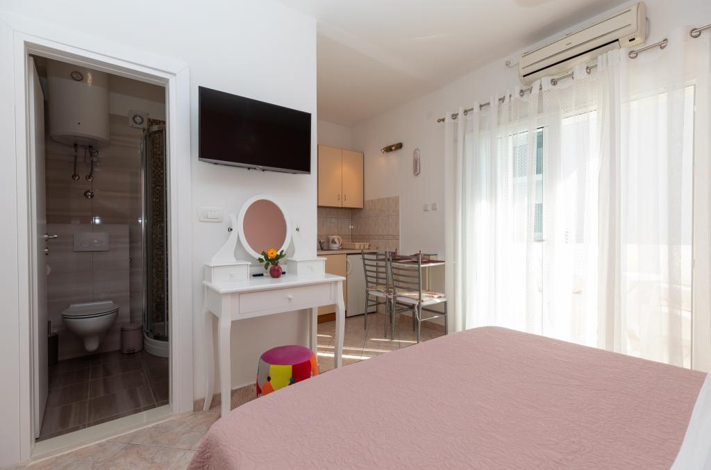 Nous vous recommandons appartement Perak. Les propriétaires étaient très sympathiques. Nous sommes arrivés à 9 heures du matin et immédiatement on nous a offert du café et des boissons froides. La petite chambre était propre et parfumé avec un climat de travail et de l'Internet et d'un balcon donnant sur la mer Adriatique. Près de la belle et calme plage avec une belle vue et de l'eau incroyable. Je recommande cet endroit.
