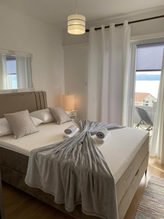 Un appartement moderne magnifique et très propre dans un emplacement parfait ... Idéalement situé avec une vue imprenable sur la mer ... avec de belles plages et des cafés. La vue depuis la terrasse est tout simplement magnifique... vous pourriez y passer chaque instant... Cette terrasse fait tout... Une chambre est très grande avec un lit double et l'autre est minuscule, mais juste pour dormir il y a assez... Au-dessus, dans le jardin, un endroit idéal pour un barbecue ... avec une autre belle vue sur la mer et les immenses montagnes Je recommande vivement c'était méga ....