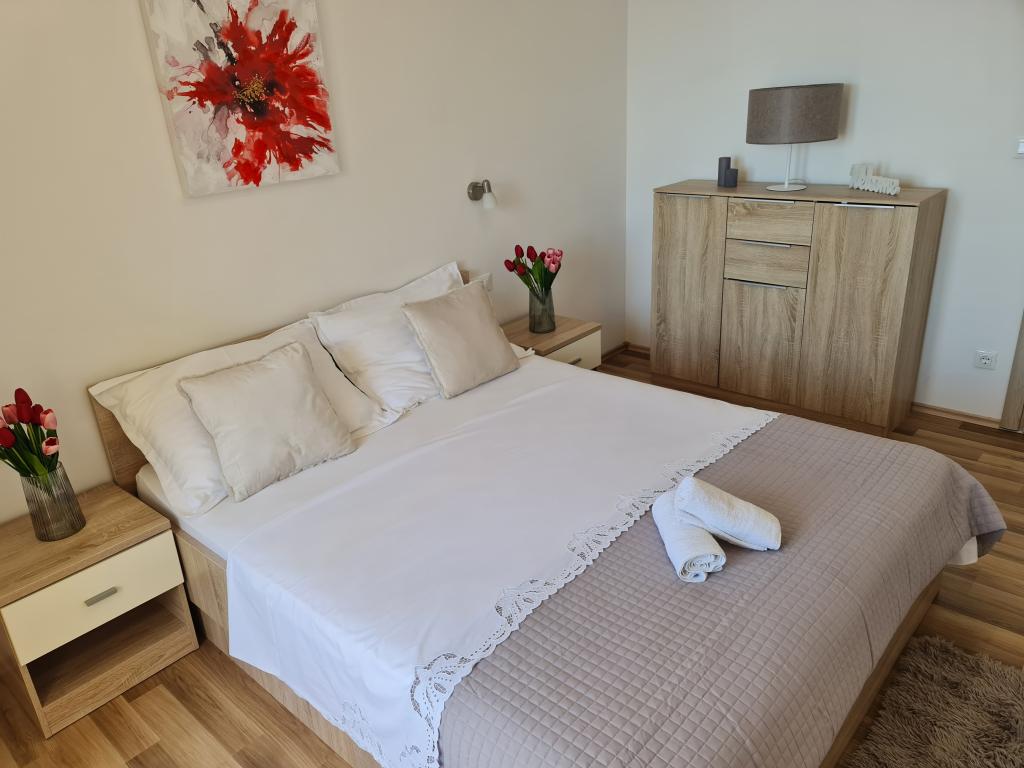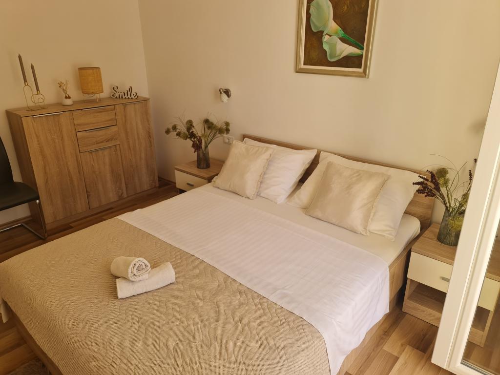 Pour les dames, nous donnons des vacances dans la seconde moitié de Juin. L'appartement est entièrement meublé, nouvelle, grande et propre. Comme le montre les photos, il est donc dans la réalité, et encore plus belle. Vraiment priporočava si vous voulez passer des vacances tranquilles et de la mer sur la paume. Le plus beau souvenir d'entre nous resteront pour la plupart près de la mer, accueil sympathique et chatons ludique. :) Certainement toujours revenir en arrière et priporočava.