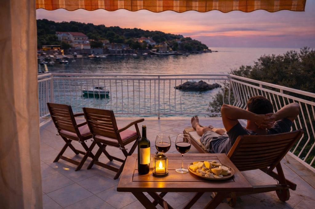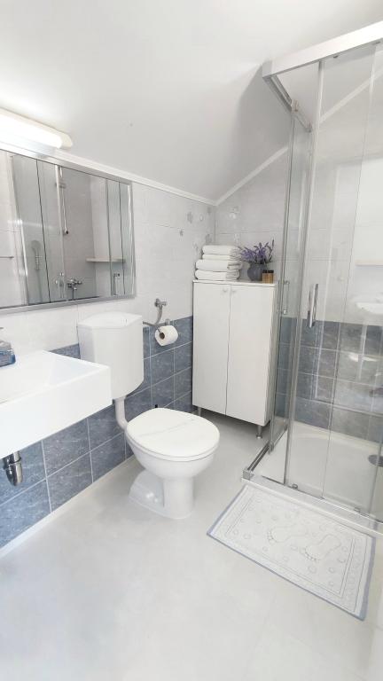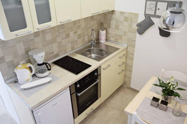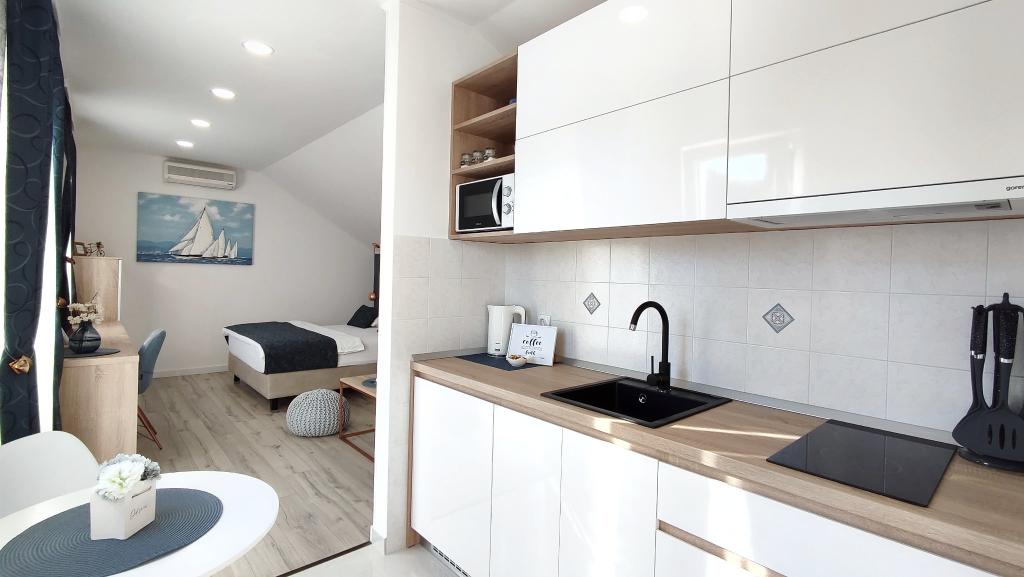 Je vais commencer par les hôtes, car ils sont merveilleux. Karmen et toute la famille rendront vos vacances extrêmement agréables. Ils sont là pour chaque question et chaque type d'aide. Nous avons été accueillis par un appartement propre et bien rangé, magnifiquement conçu, entièrement équipé avec tout le nécessaire dans la cuisine et la salle de bain. Les serviettes et les draps sont changés régulièrement, tous les deux jours. Ils fabriquent également de l'huile d'olive fine, que vous pouvez acheter dans le bâtiment. L'appartement est parfaitement positionné, avec sa propre petite plage de galets où il y a de l'ombre l'après-midi. Vous pouvez rester au froid toute la journée si vous vous positionnez sous un arbre. Nous pourrions utiliser le barbecue sur la plage à tout moment, il est à la disposition des clients. Le restaurant le plus proche est à 3 pas de l'établissement et propose une bonne cuisine, avec des prix standard pour la côte croate. Un petit magasin se trouve à 3 minutes à pied, mais il est bien équipé. Il y a aussi une petite plage de sable près du magasin, et une plus grande est à environ 10 minutes à pied. Toute la ville est belle et calme, idéale pour des vacances paisibles.