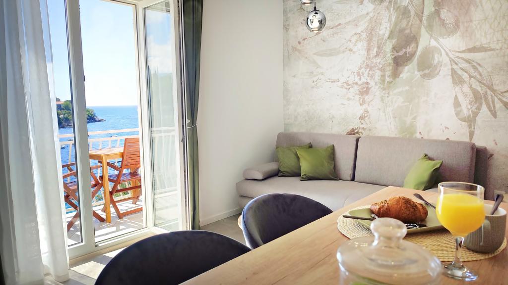 Taxe de sejour est inclus dans le prix.À Molunt, vous pourrez faire de la randonnée, du vélo et, en été, profiter des belles plages et de la mer cristalline, ou louer un bateau pour la pêche et la plongée. Molunat est un petit village touristique et de pêcheurs, situé dans l'une des plus belles baies du sud de l'Adriatique, à 40 km au sud-est de la célèbre ville culturelle et historique de Dubrovnik, et à 20 km de l'aéroport de Dubrovnik et de Cavtat. Le nom Molunat a des racines illyriennes et grecques (molos - port), ce qui indique qu'il y avait un port dans cette région dans l'histoire ancienne. République de Dubrovnik au XVe siècle. construit un port et des murs défensifs particulièrement bien fortifiés du côté de la mer, tandis que la colonie elle-même commence à se former au 19ème siècle. À Mol