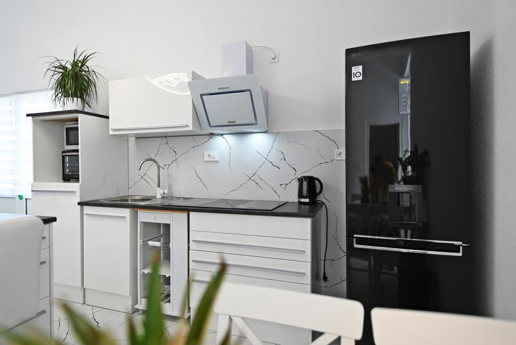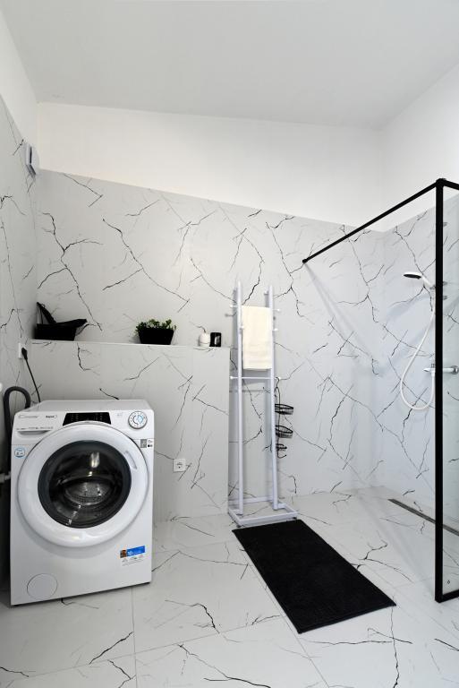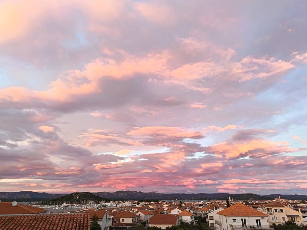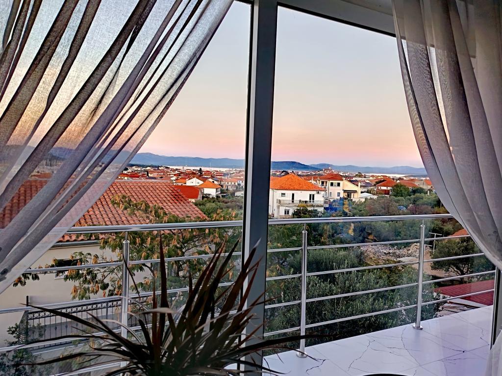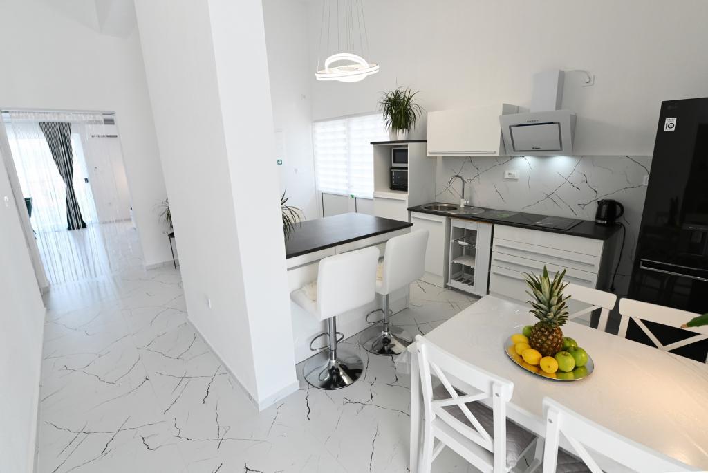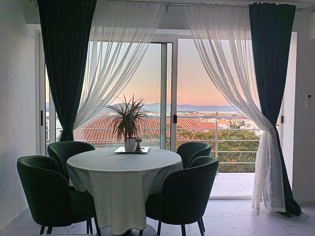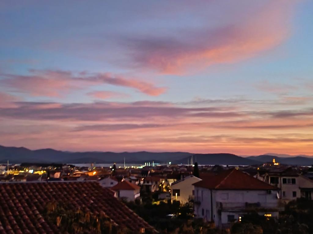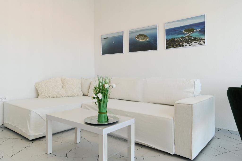 Appartement de 70 m² entièrement rénové et équipé de façon moderne, situé au premier étage d'une maison familiale. L'appartement dispose d'une entrée indépendante et d'une vue sur la mer depuis une petite terrasse attenante au séjour, accessible par une large baie vitrée s'étendant sur presque toute la longueur de celui-ci. Vous pourrez admirer les îles de Murter et la mer, le panorama sur la ville et, au loin, le Velebit, Betina et la mer environnante, tout en savourant votre café du matin dans votre havre de paix, car l'étage entier vous est réservé. La salle à manger donne accès à une grande terrasse de 30 m² où vous pourrez prendre vos repas autour d'une grande table de jardin en verre. Un barbecue électrique portable est à votre disposition pour préparer sur la terrasse, par exemple, des fruits de mer frais du jour, achetés directement au chalutier ou au marché aux poissons du centre de Murter. La salle de bain est spacieuse et équipée d'une douche à l'italienne. L'appartement bénéficie d'une belle hauteur sous plafond. Le parking, situé devant la maison, est gratuit. Le Wi-Fi est également disponible gratuitement.