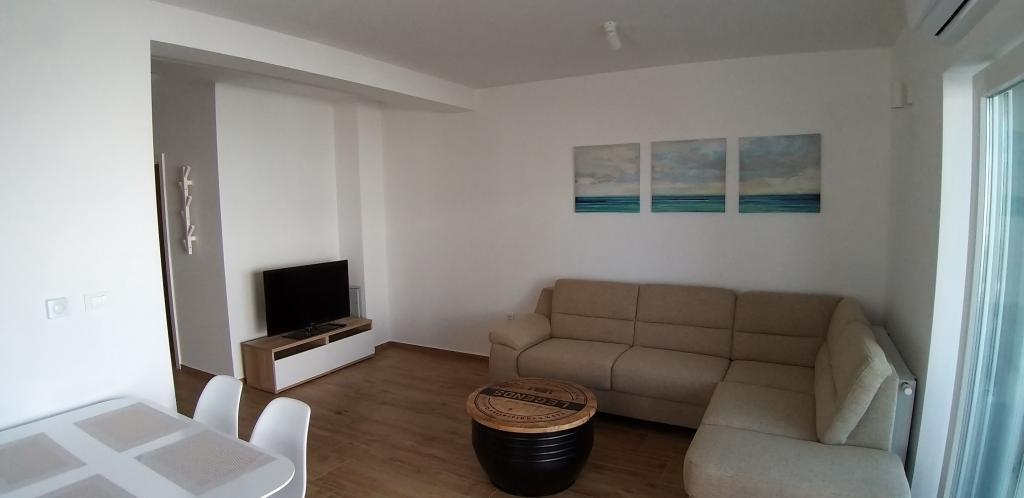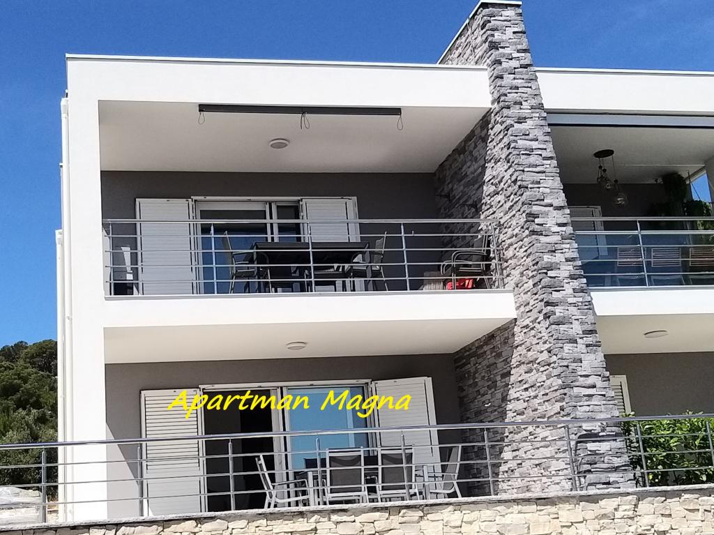 L'appartement "MAGNA" est situé à proximité immédiate de la plage municipale, à 1000 m du centre ville et offre une belle vue sur la mer. L'appartement a une superficie de 60 m2 et dispose de deux chambres pouvant accueillir jusqu'à 5 adultes. L'appartement est situé au rez-de-chaussée (indiqué sur la photo) et les clients ont accès à une terrasse avec barbecue. Le parking est devant la maison et est inclus dans le prix. Les animaux ne sont pas autorisés.