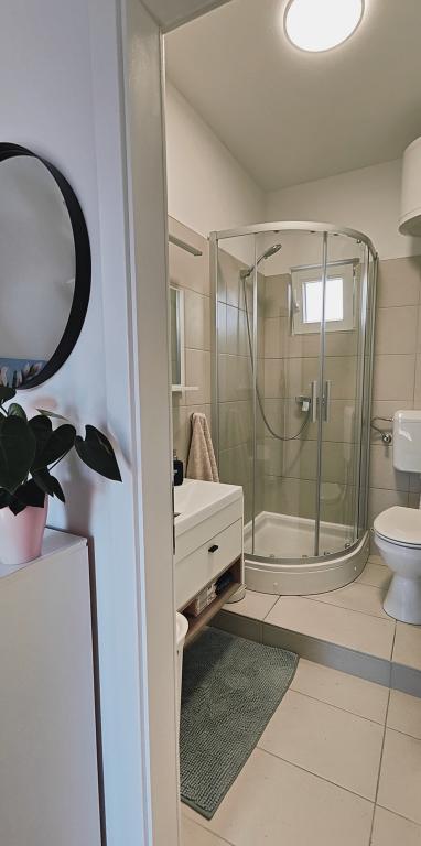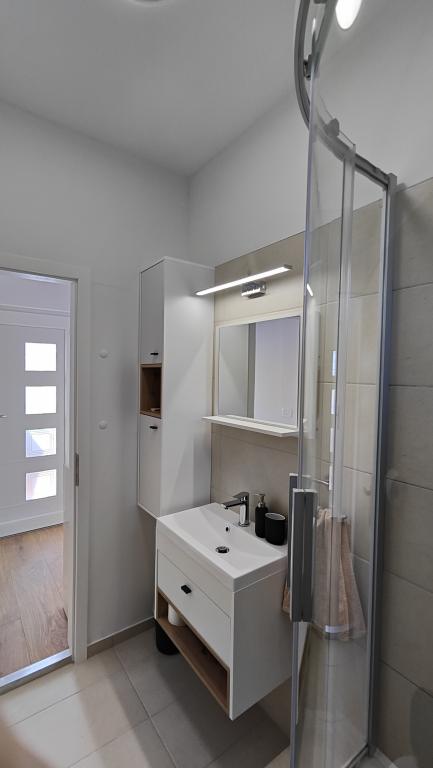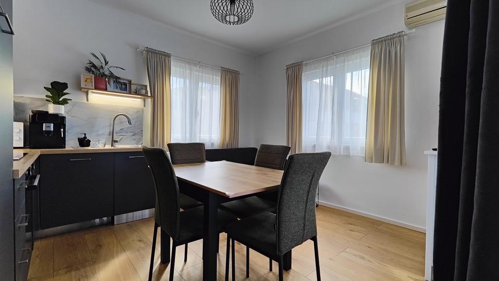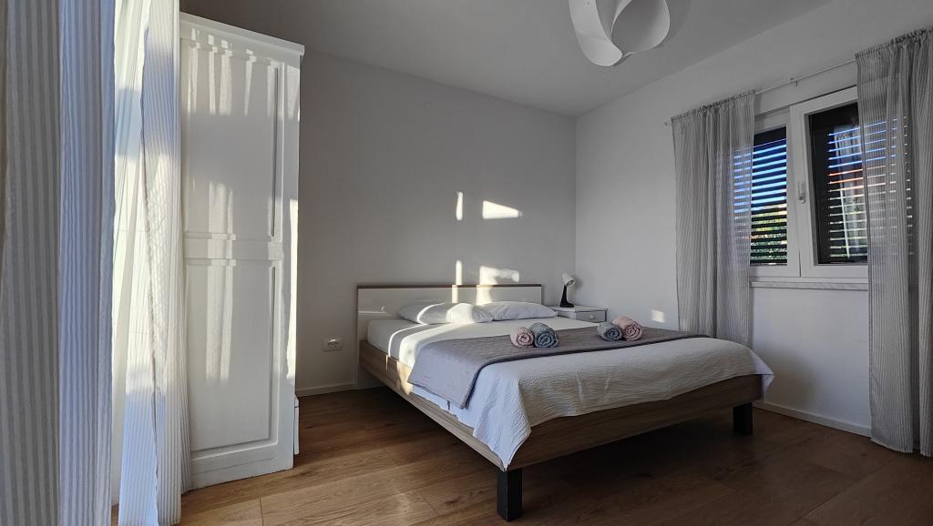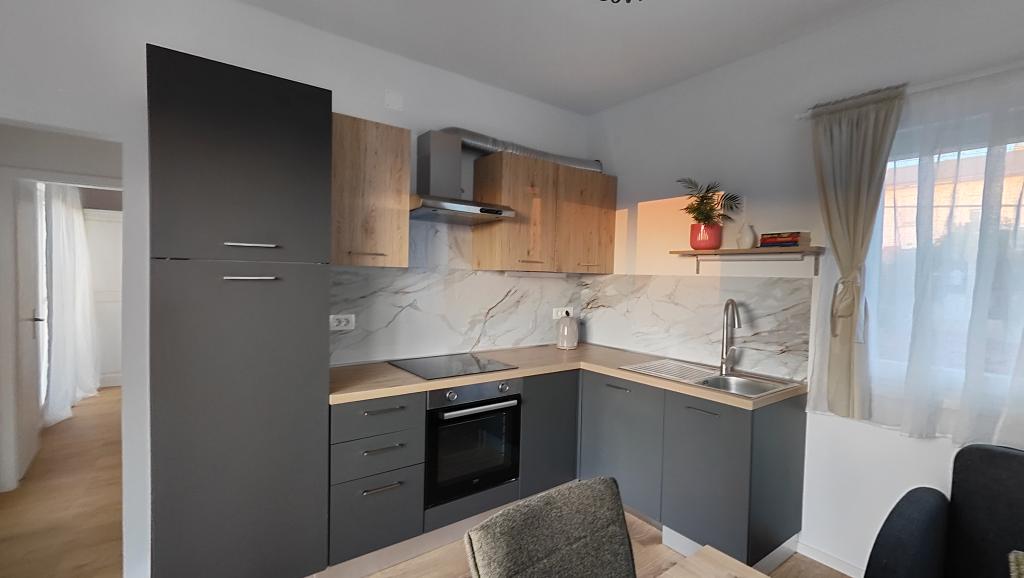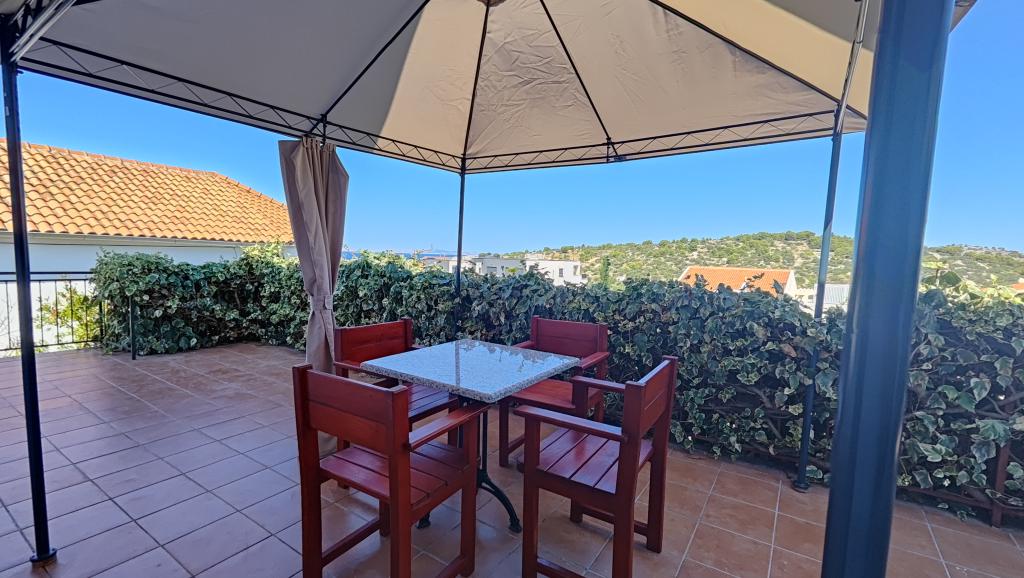 Appartement entièrement rénové dans un cadre privé, avec une grande terrasse et vue sur la mer, à 300 m de la plage de sable de Slanica. Vous aurez accès à un barbecue et à un espace convivial dans le jardin, ainsi qu'à une place de parking sécurisée. L'appartement comprend une grande chambre séparée. La cuisine est entièrement équipée avec machine à café, lave-vaisselle, grand réfrigérateur et congélateur. Un lave-linge est également à votre disposition.