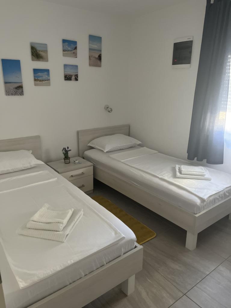 Enthousiaste pour l'appartement, qui est propre, bien rangé et nouvellement équipé avec four, lave-vaisselle et lave-linge, immense douche (tout le monde est ravi, même les amis qui nous ont rendu visite). Plage juste en dessous de l'appartement, douche extérieure également disponible, terrasse aménagée sous les pins pour se prélasser. Peut-être que nous avons manqué un ventilateur dans l'appartement ou au plafond sur la terrasse, car nous avions des températures supérieures à 30 degrés tout le temps, donc il ne faisait pas froid même la nuit. C’est génial car il y a des moustiquaires sur les fenêtres et les portes, donc il n’ya pas de problèmes de moustiques. La climatisation fonctionnait sans problème, une énorme quantité de serviettes, de linge de lit et de nettoyants disponibles. Parfois, il agaçait un peu Internet ou le wifi. Les lumières dans les escaliers le soir sont super, elles éclairent juste la terrasse. Le grill est flambant neuf, je pense que c'était la journée la plus chaude lorsque nous avons décidé de cuire un peu. L'hôte Martina et sa famille sont très sympathiques, disponibles pour de l'aide. Bref ... des vacances où l'on se repose vraiment, malgré les petits enfants. J'espère vous revoir l'année prochaine, car nous avons trouvé ce que nous voulons - du moins jusqu'à ce que nous ayons à nouveau un chiot. Petra, Slovénie
