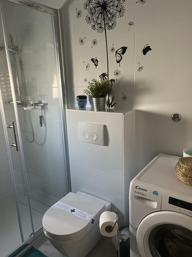 L'appartement Franka est une très belle location de vacances. Il dispose d'une petite cuisine équipée d'une cuisinière, d'un four et d'un micro-ondes. L'équipement comprend quelques tablettes pour lave-vaisselle, du liquide vaisselle et de la vaisselle : tout le nécessaire. Il ne manquait rien. Puisqu'il s'agit d'un espace salon-salle à manger, il y a un canapé à côté de la cuisine qui peut être converti en canapé-lit, ainsi qu'une télévision. La chambre dispose d’un grand lit – parfois nous y dormions à quatre – et d’un grand placard. La salle de bain dispose d'une très grande douche, d'un lavabo, d'un WC et même d'une machine à laver. Le logement comprenait également divers produits de nettoyage et un aspirateur. La terrasse dispose d'une table de jardin avec quatre chaises, d'un barbecue et de deux chaises longues en bois. Un portant est également à votre disposition. Comme vous pouvez le voir sur les photos, tout est magnifiquement vert et vous avez une très belle vue sur la mer. On accède à la plage de l'autre côté de la rue. Il suffit de descendre quelques marches et des chaises longues sont à disposition. Pour aller jusqu'à l'eau, il faut descendre un rocher, mais c'est facilement faisable. Nous avons deux jeunes enfants, et ils y sont parvenus à merveille. C'est la seule plage de galets à proximité. Sinon, il faut marcher environ 900 mètres pour rejoindre la plage publique – il y a des galets plus fins, mais elle est très fréquentée. Nous avons donc vraiment apprécié notre petite plage. Vous pouvez également vous allonger sur les rochers. L'eau est cristalline et tout simplement magnifique. Il y a cependant un petit point négatif : De temps en temps, une odeur désagréable provenait des canalisations. Ce n'était pas constant, mais on le percevait de temps en temps. Nous serions ravis de revenir ! L'hôtesse a toujours répondu rapidement à nos questions et nous nous sommes sentis entièrement entre de bonnes mains.