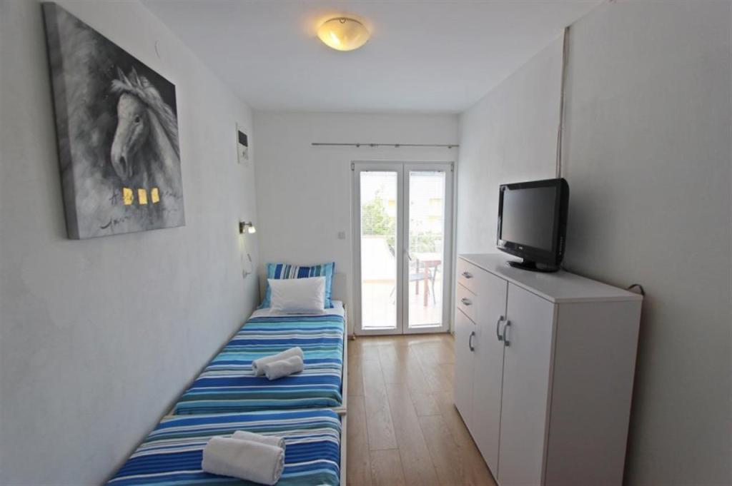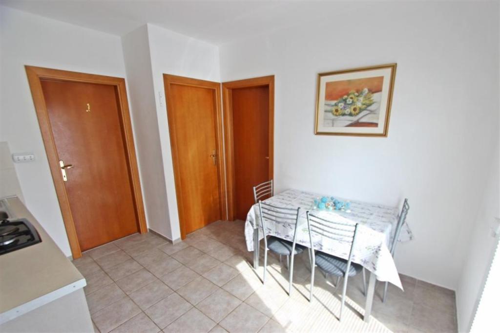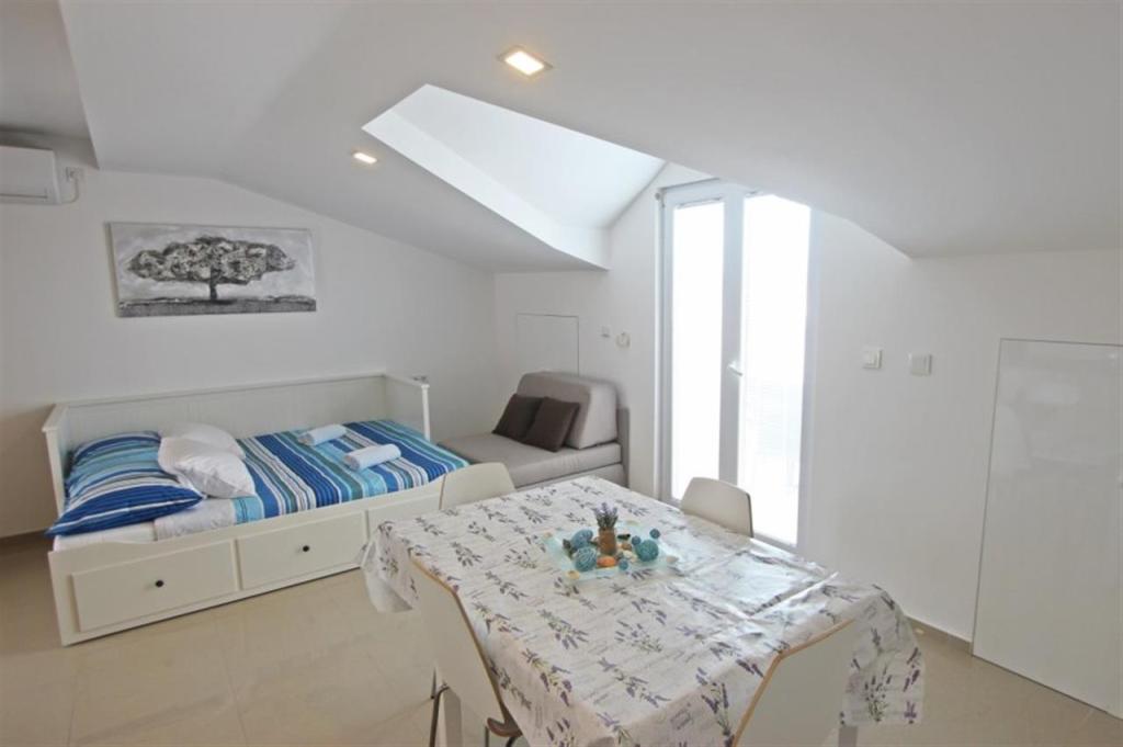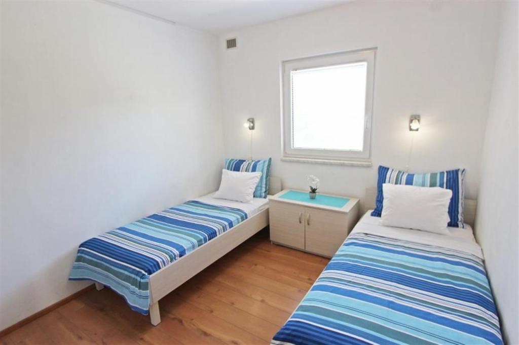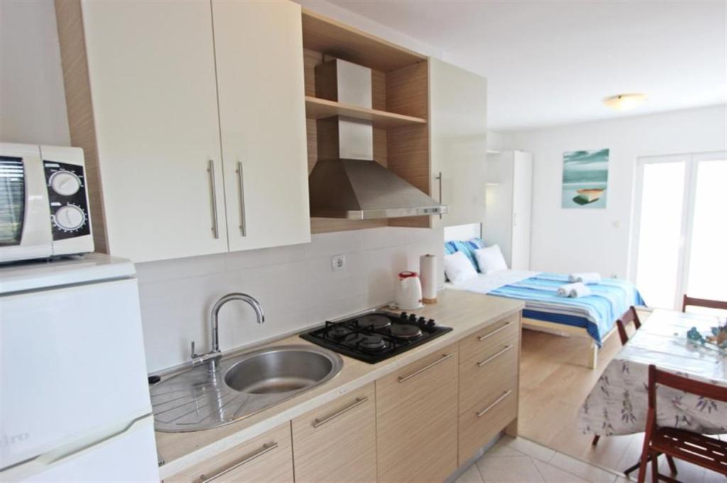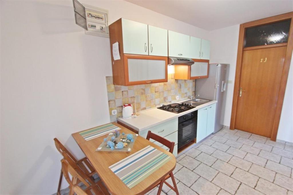 Appartements pour quatre personnes 2 + 2 ou studios 2 + 1. Ils se composent d'une chambre (un lit double) et d'une chambre avec deux lits simples (dimensions 200x90) ou d'une chambre et d'un lit dans le salon, tandis que les studios se composent d'un lit double avec lit supplémentaire, d'une cuisine, d'une salle de bains et d'un grand terrasse (15m2 / 18m2). De plus, au rez-de-chaussée, il y a une pièce avec une machine à laver que les clients peuvent utiliser. Les appartements sont équipés de TV et climatisation, wi-fi, micro-ondes et réfrigérateur avec congélateur. Devant l'appartement, nous avons un barbecue extérieur que les clients peuvent utiliser à tout moment. Un parking est prévu et situé dans la cour. La distance de la première plage et des commerces est à 250 m tandis que le centre est à 1 km