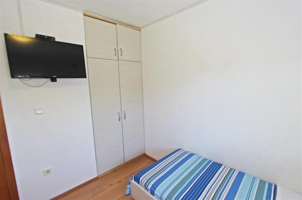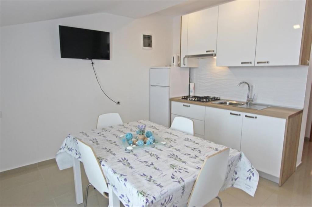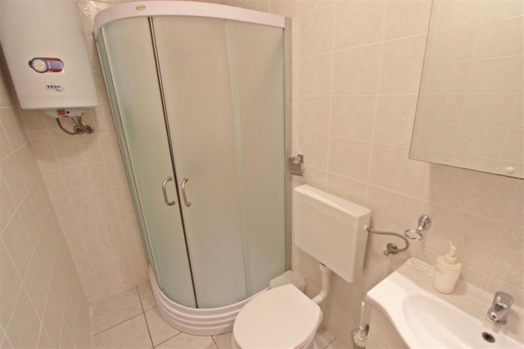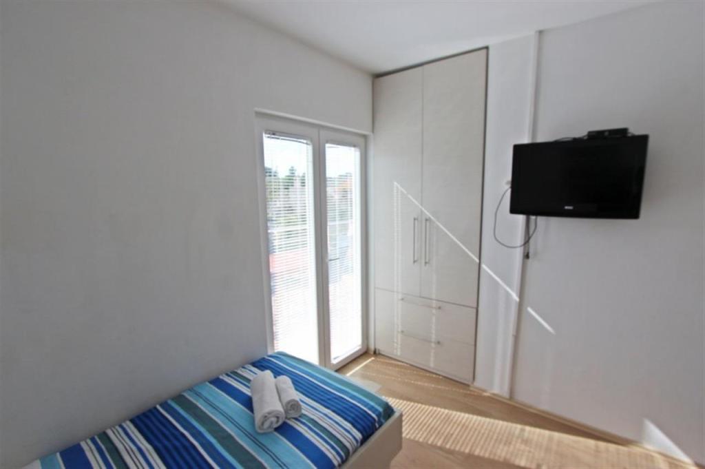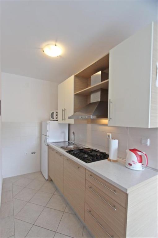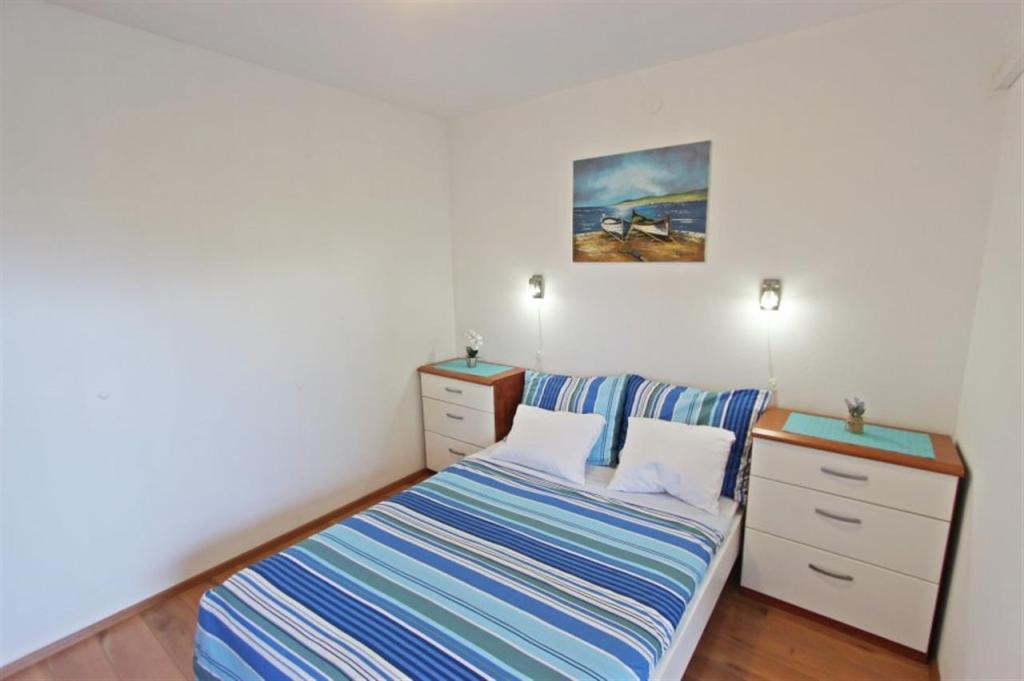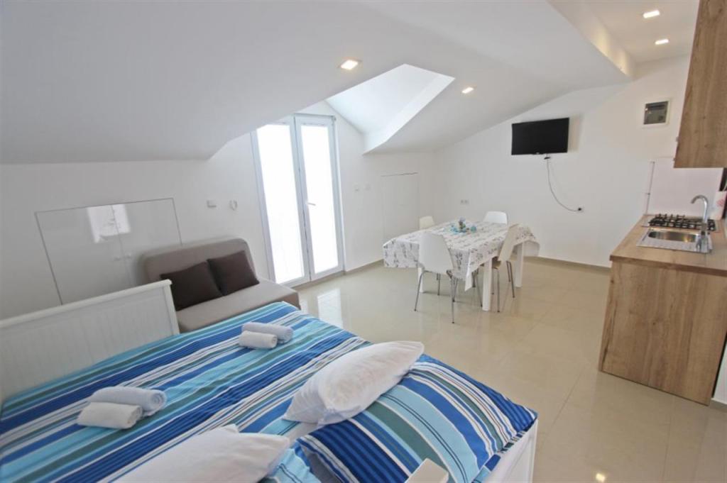 Appartements pour quatre personnes 2 + 2 ou studios 2 + 1. Ils se composent d'une chambre (un lit double) et d'une chambre avec deux lits simples (dimensions 200x90) ou d'une chambre et d'un lit dans le salon, tandis que les studios se composent d'un lit double avec lit supplémentaire, d'une cuisine, d'une salle de bains et d'un grand terrasse (15m2 / 18m2). De plus, au rez-de-chaussée, il y a une pièce avec une machine à laver que les clients peuvent utiliser. Les appartements sont équipés de TV et climatisation, wi-fi, micro-ondes et réfrigérateur avec congélateur. Devant l'appartement, nous avons un barbecue extérieur que les clients peuvent utiliser à tout moment. Un parking est prévu et situé dans la cour. La distance de la première plage et des commerces est à 250 m tandis que le centre est à 1 km