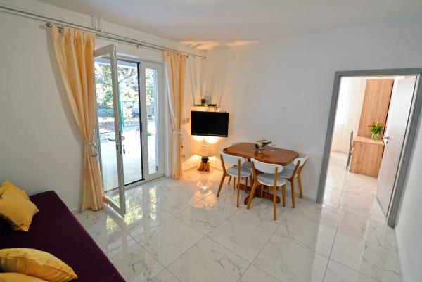 Nous avons passé des vacances très agréables dans les appartements Dora. Un bel appartement bien décoré et les hôtes sont très sympathiques. Ils ont également très bien accueilli notre chien, ce pour quoi je leur suis très reconnaissant. C'était notre première fois et nous y reviendrons certainement. Recommandations.