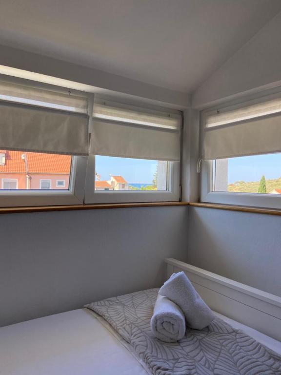 Les appartements sont situés dans un quartier calme de Murter, à 5 minutes à pied du centre, de la plage et des magasins. Entièrement meublé avec vue sur la mer.
