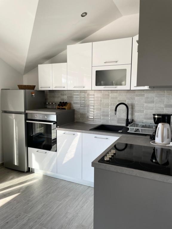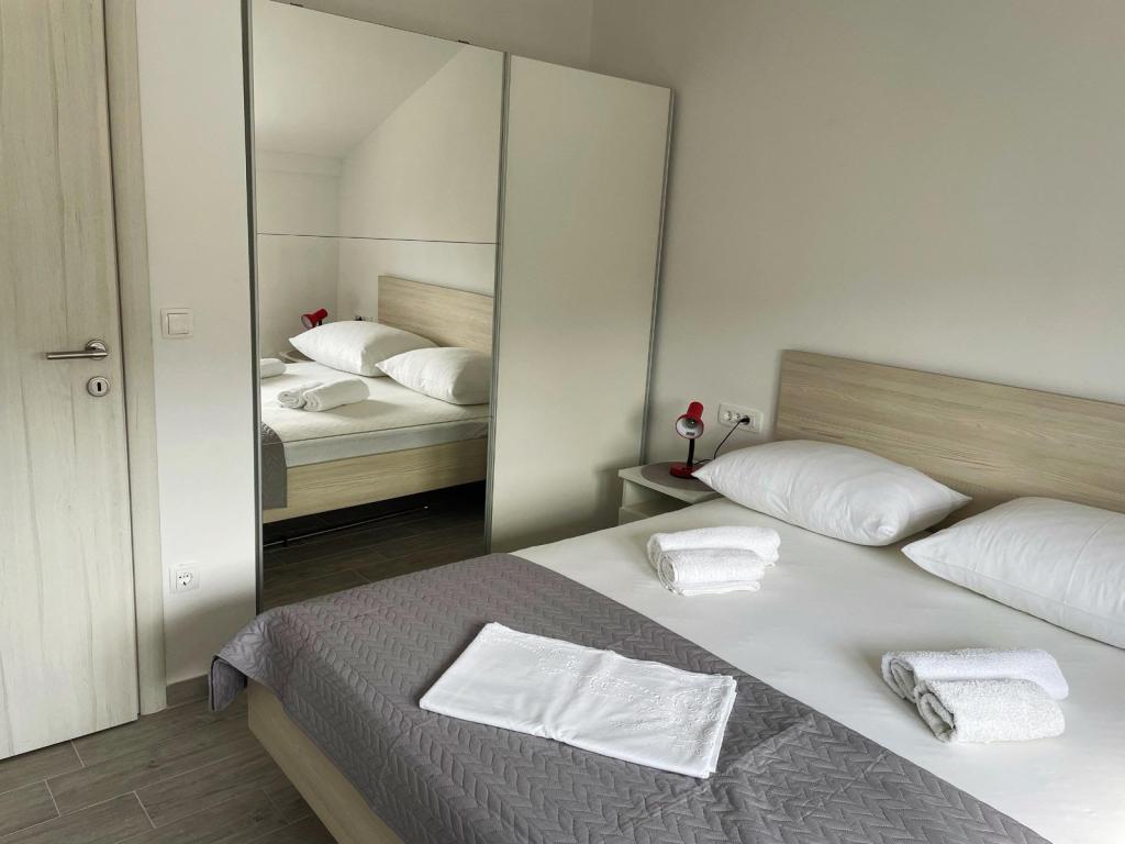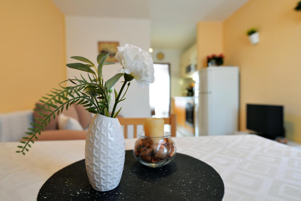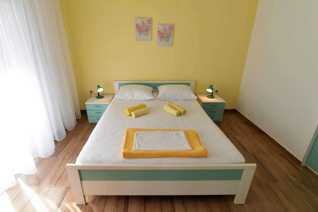 Nos appartements sont situés en plein centre-ville. Il y en a quatre : deux appartements d'une chambre et deux appartements de deux chambres. Ils offrent une vue magnifique sur la mer, un atout qui séduit nos hôtes, dont certains reviennent régulièrement. La plage principale est à quelques minutes seulement et le centre-ville à 5 minutes à pied. Nos hôtes apprécient particulièrement notre accueil. Nous disposons également d'un grand et beau jardin fleuri, où poussent divers légumes locaux. Alors, venez nous rendre visite, vous ne le regretterez pas ! Nous serons ravis de vous accueillir :)