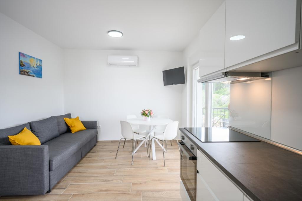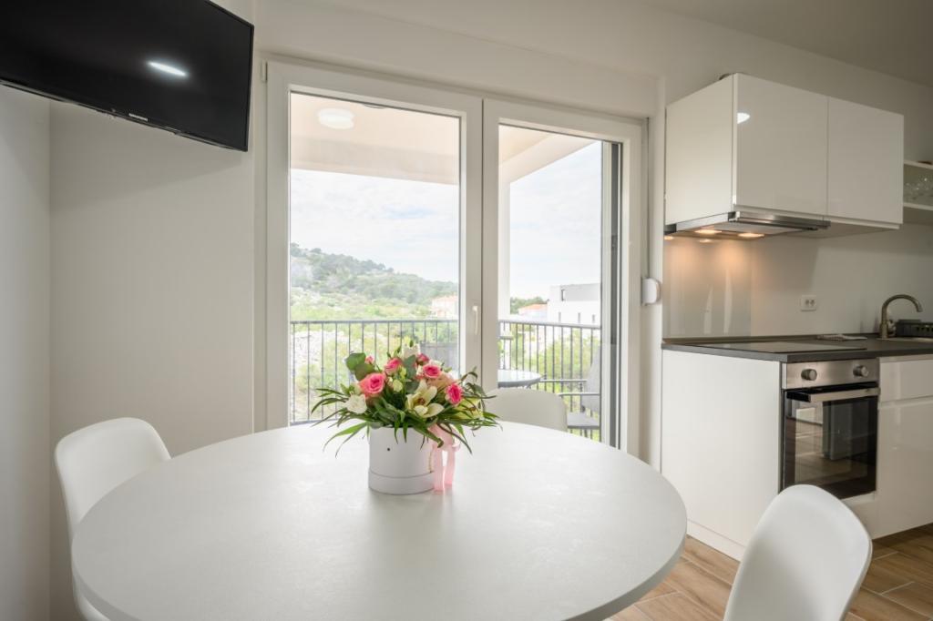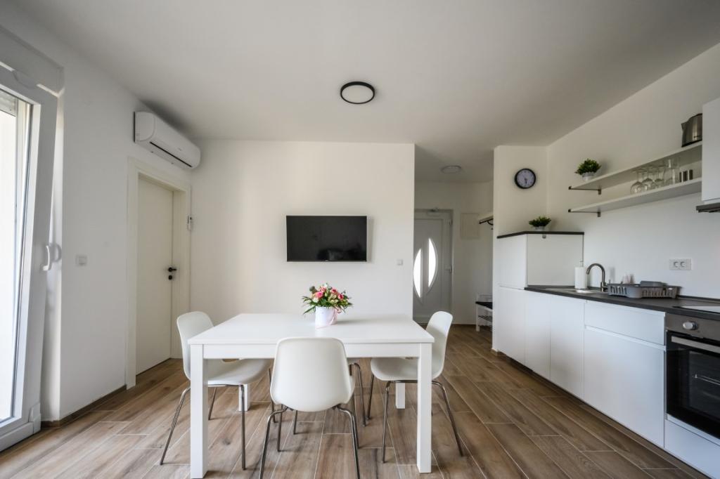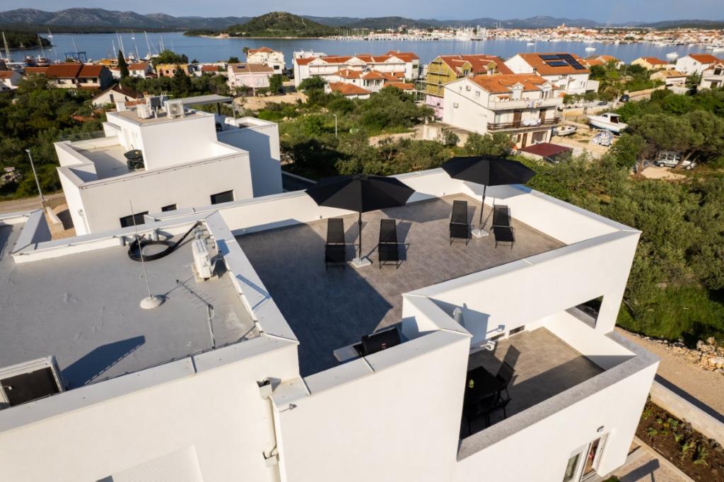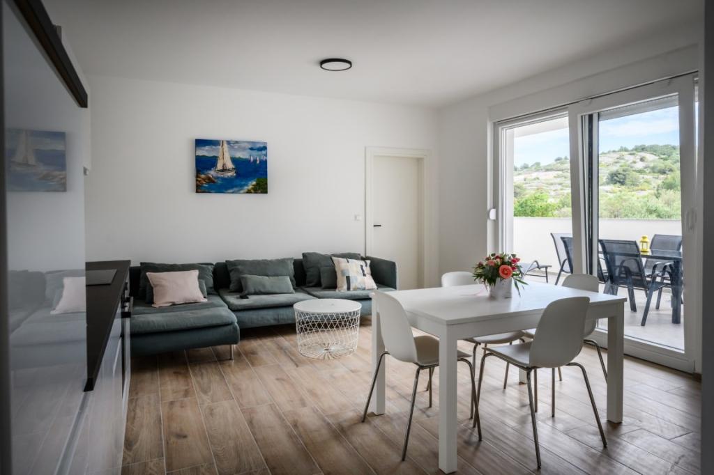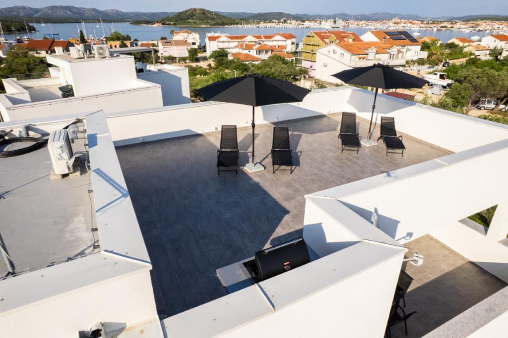 Les appartements Mate sont équipés de façon moderne avec des meubles modernes et sont situés dans un quartier calme de Murter près de la plage de Podvrške (5 minutes à pied) et de la plage de Luke (5 minutes à pied). Chaque appartement a sa propre terrasse, et sur le toit de la maison il y a une terrasse commune avec des transats et un barbecue à gaz.