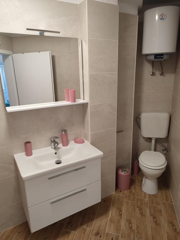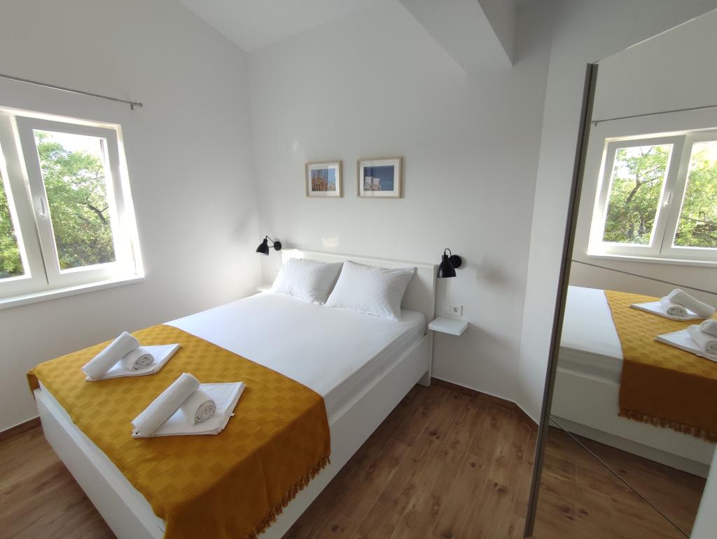 Au deuxième étage d'une maison familiale, dans un quartier calme et agréable de Murter, se trouvent nos appartements climatisés, parfaits pour un séjour relaxant en couple ou en famille. La plage de Čigrađa est à 600 m et le centre-ville à 1,3 km. L'établissement propose trois appartements : un appartement de 80 m² pour 4 personnes avec deux chambres, une cuisine entièrement équipée et un balcon avec vue sur la mer ; et deux appartements de 42 m² pour 2 personnes, chacun avec un balcon – l'un avec vue sur la mer, l'autre avec vue sur le jardin. Le parking, la climatisation et un lave-linge sont mis gratuitement à la disposition des hôtes. L'établissement est non-fumeur, sauf sur les balcons. Les animaux domestiques ne sont pas admis. Les hôtes apprécient le calme, la propreté et le confort des appartements – un point de départ idéal pour découvrir Murter et les plages environnantes.