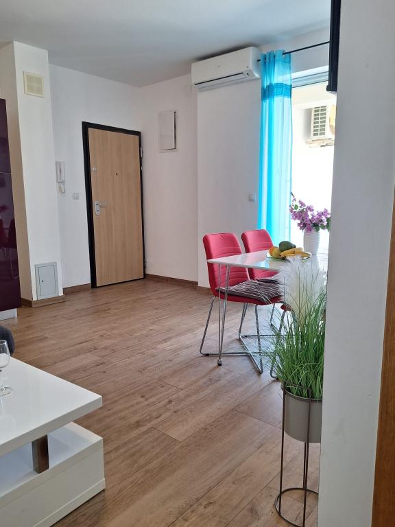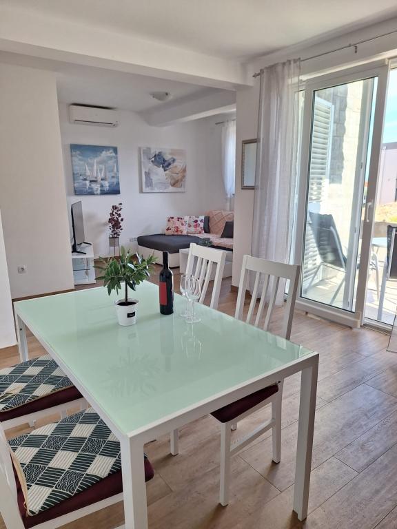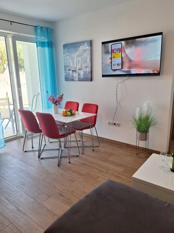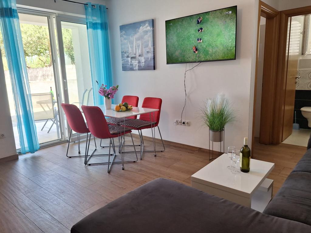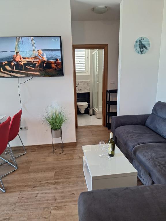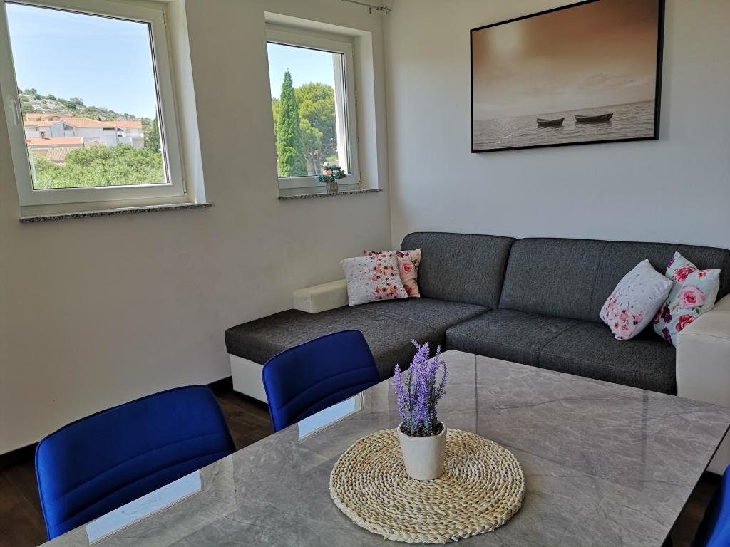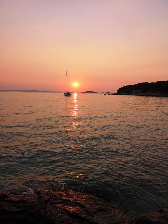 Villa Tea se compose de six unités d'hébergement. Les appartements disposent d'une ou deux chambres, d'une salle de bain, d'un séjour avec cuisine et salle à manger et d'une terrasse avec une belle vue sur la mer. Les appartements sont entièrement équipés. Chaque appartement dispose de sa propre place de parking, d'une connexion Wi-Fi gratuite et de la climatisation. La plage de sable la plus proche, Slanica, est à seulement cinq minutes de la propriété. Si, par contre, vous aimez vous promener le long du chemin sur lequel pendent les branches de pin et rendre votre promenade agréable, à environ dix minutes de Slanica se trouve la plage de Podvrška avec la belle couleur turquoise de la mer. Il y a un magasin à proximité et le centre-ville est à seulement 15 minutes. Si vous le pouvez, notre chaleureuse recommandation est de visiter les parcs nationaux de Kornati et de la rivière Krka, le canyon de la rivière Zrmanja et les parcs naturels du lac Vrana et de Telaščica.