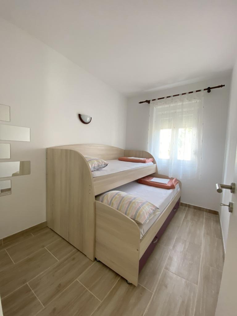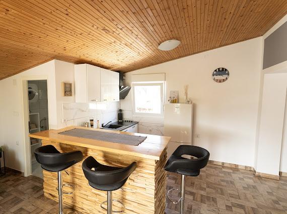 Nous proposons des appartements confortables pouvant accueillir jusqu'à 6 personnes. Chaque appartement dispose d'une cuisine entièrement équipée, d'une salle de bains, d'un salon, de chambres et d'un balcon privé. Pour les appartements au rez-de-chaussée, vous disposez d'une cour avec jardin, barbecue, table et chaises à votre disposition. Les appartements sont à seulement 150 mètres de l'une des plus belles plages de l'Adriatique.Dans la ville de Murter, vous trouverez tout ce dont vous avez besoin pour passer d'agréables vacances. En plus de nombreux restaurants et cafés, il y a quelques supermarchés, boulangeries, boucheries, un marché, une clinique, une pharmacie, un bureau de poste, une banque, des distributeurs automatiques de billets, une station-service, une église, un cinéma, une marina, clubs de plongée, terrains de sport et aires de jeux pour enfants. Vous pouvez louer un bateau, un scooter, un cyclomoteur ou un vélo. Des excursions en bateau vers le parc national de Kornati sont également proposées et le parc national de Krka est également à proximité. Nous vous recommandons également plusieurs points de vue à partir desquels vous pourrez profiter d'une belle vue sur le lieu, les îles environnantes et Kornati. Les appartements sont situés à l'entrée même de Murter. Ils sont situés entre la plage "Čigrađa", la colline "Raduč"