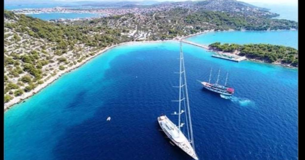 La propriété est située dans une oliveraie à 100 m de la mer, au-dessus de la plage, dans un endroit isolé. En plus d'une nature magnifique, d'une vue divine sur Kornati et de couchers de soleil, vous vivrez une pause dans la vie quotidienne en toute tranquillité. La maison a été récemment décorée et il y a tout ce dont vous avez besoin pour profiter de vos vacances. En plus d'être situé juste à côté d'une des plus belles plages de la Méditerranée, il y a une autre plage, un marché, une aire de jeux pour enfants, des restaurants, des cafés bars, une pharmacie à environ 400 m...