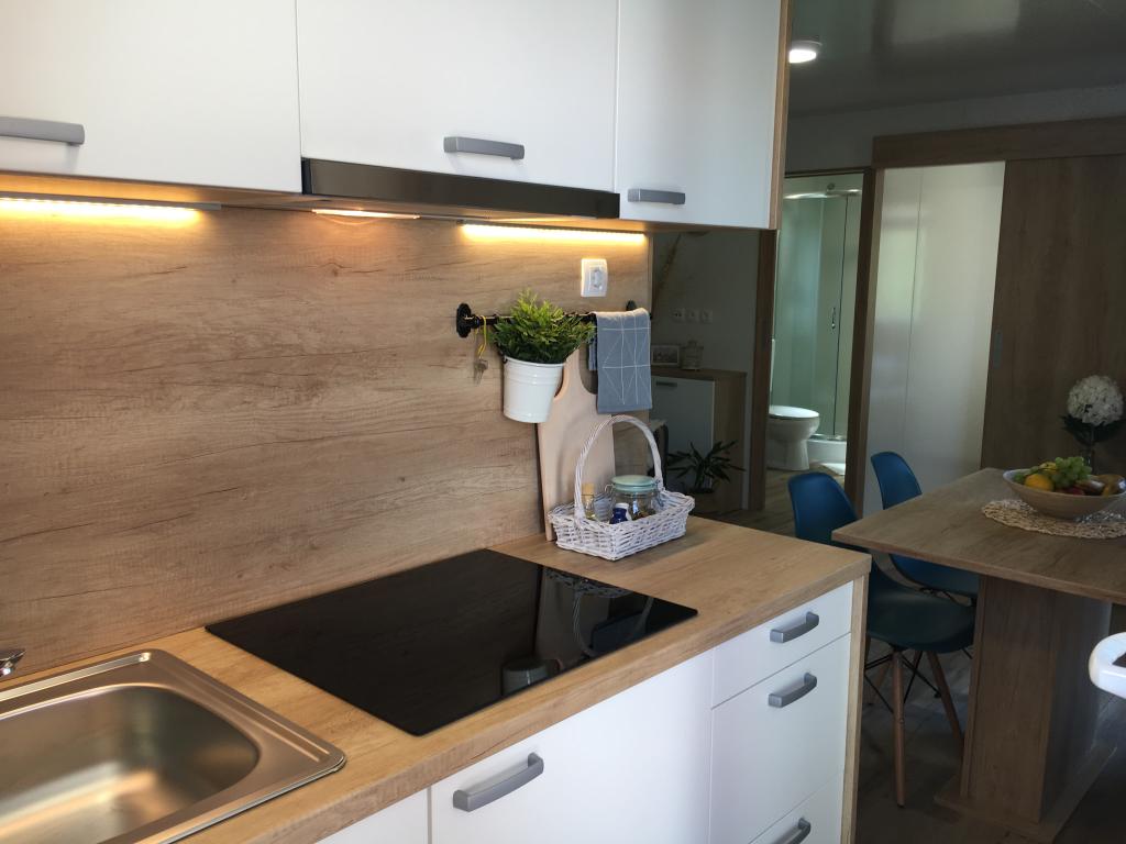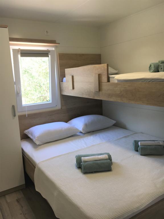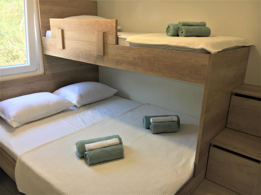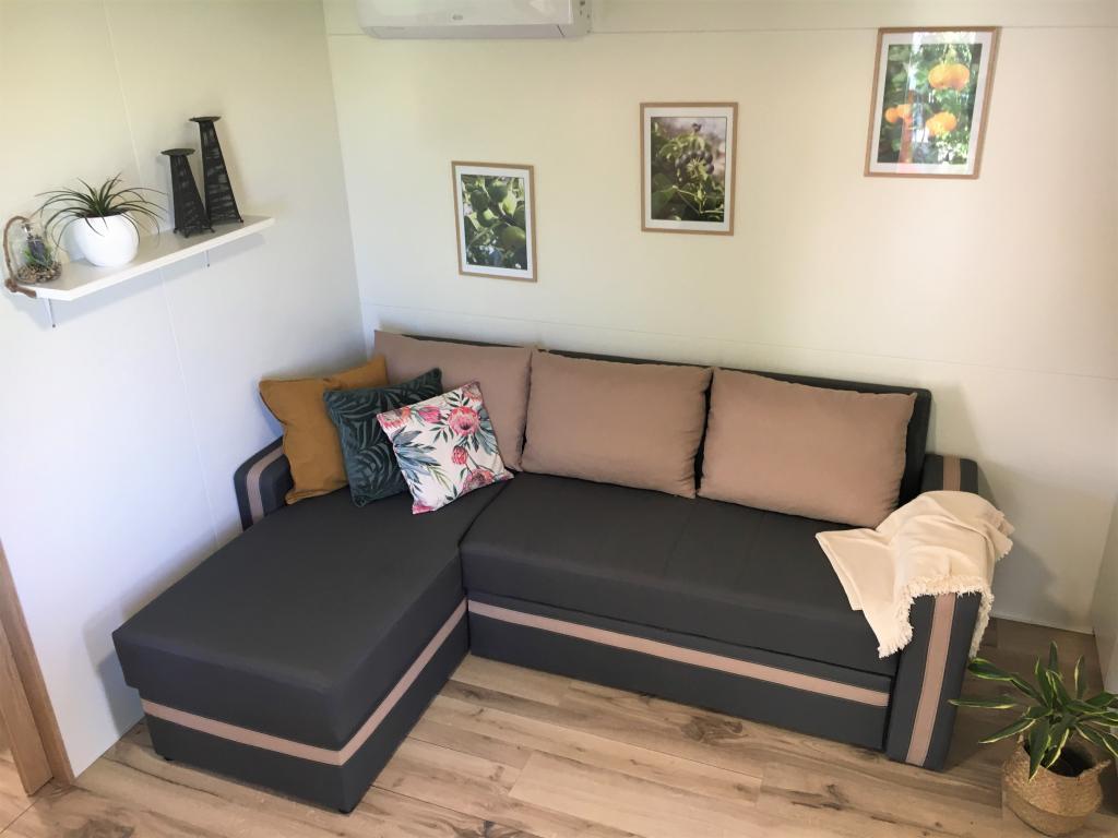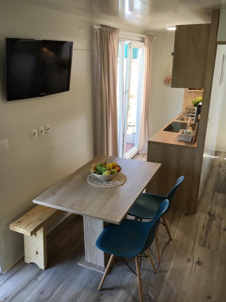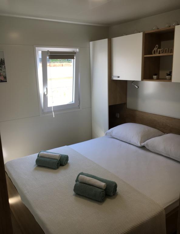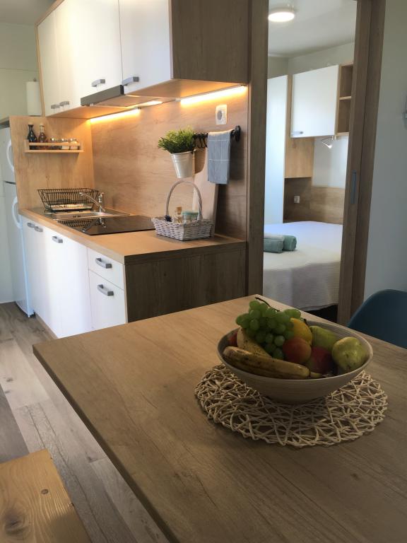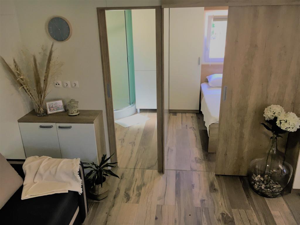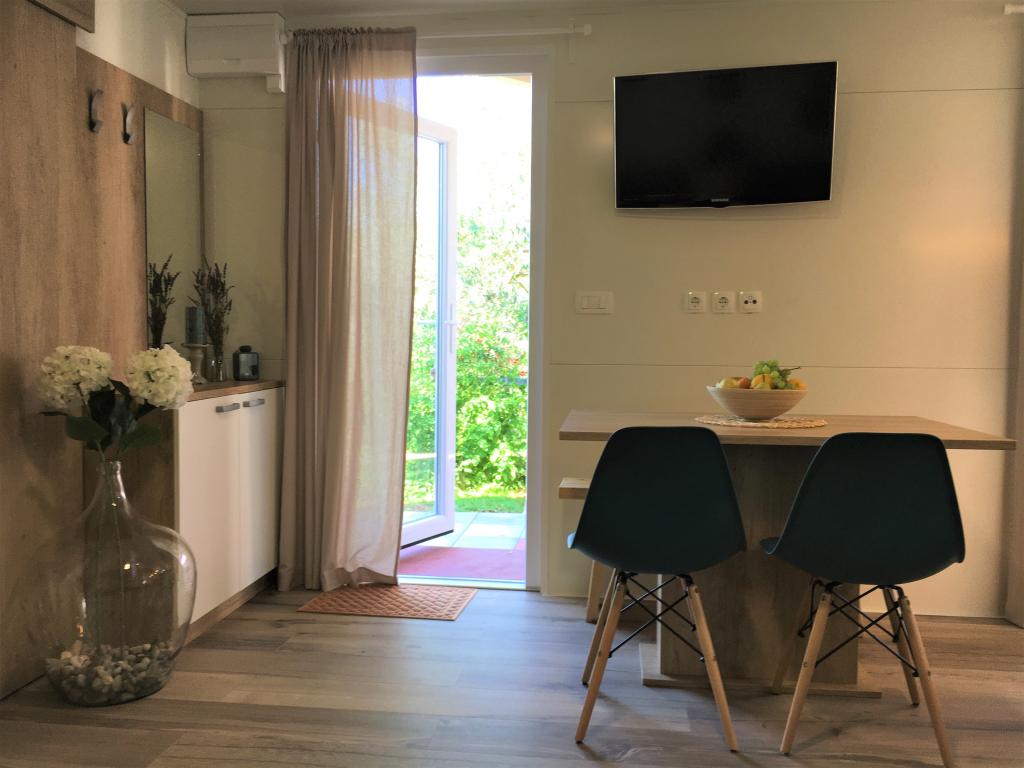 Un mobil-home dans un jardin plein d'oliviers et de verdure, idéal pour les familles et les personnes qui aiment l'intimité. Une maison moderne et équipée de façon moderne, à seulement 400 mètres de la plage de sable principale de Slanice et à 10 minutes à pied du centre. A proximité des restaurants, cafés, magasins...
