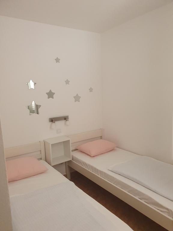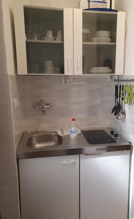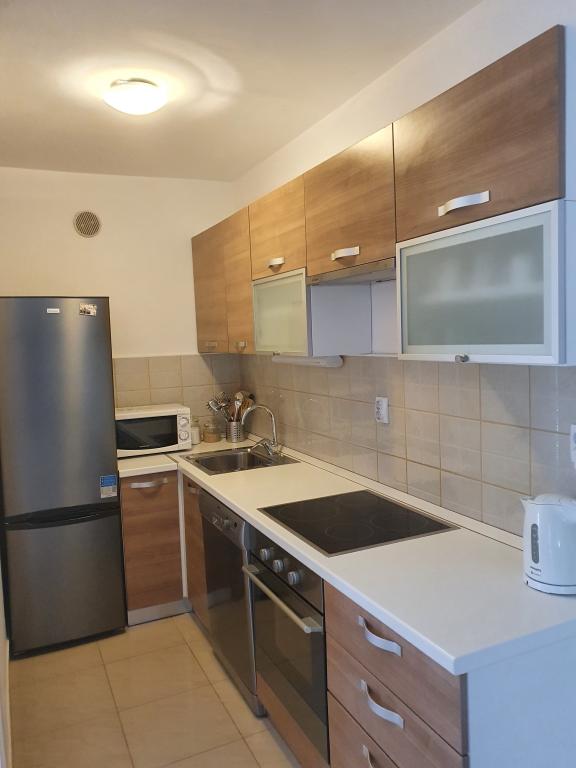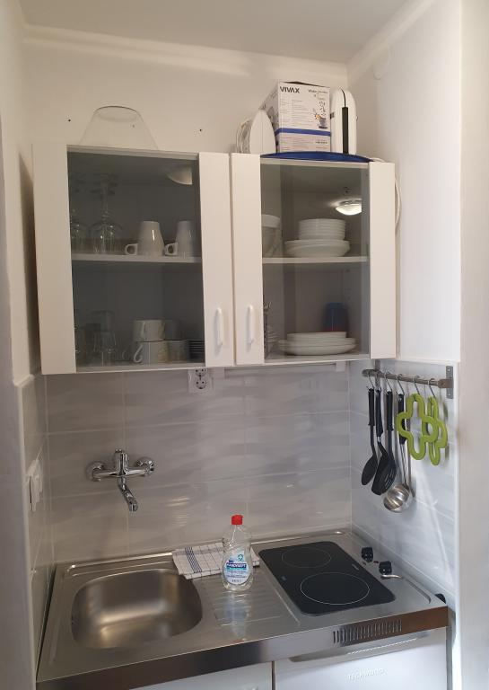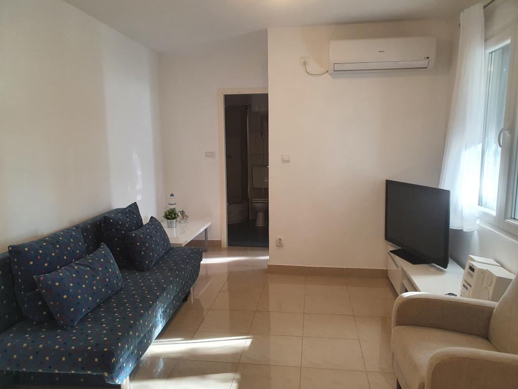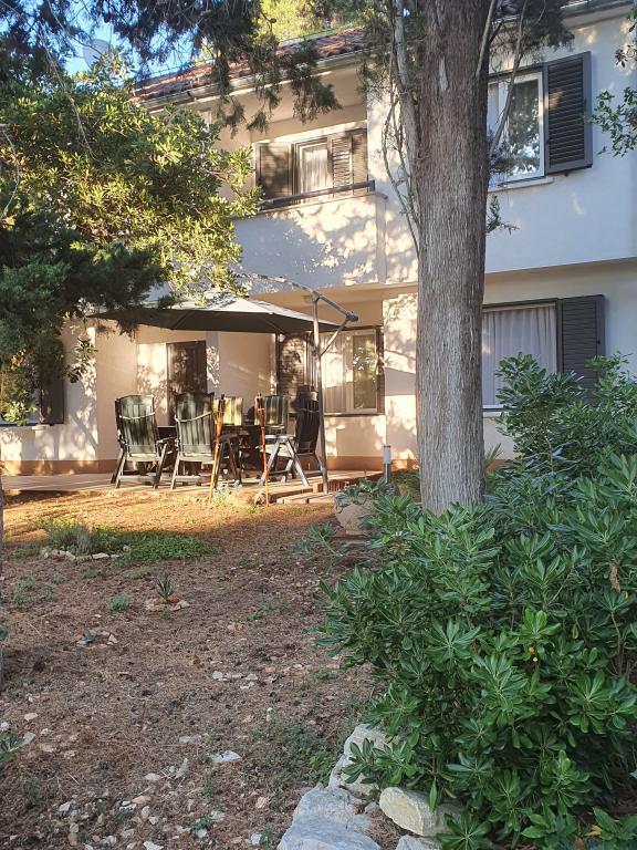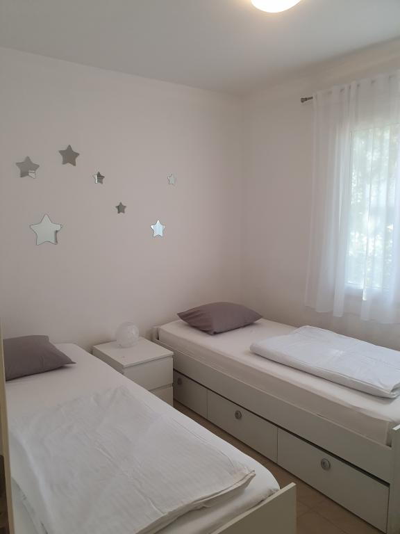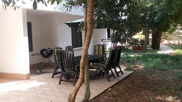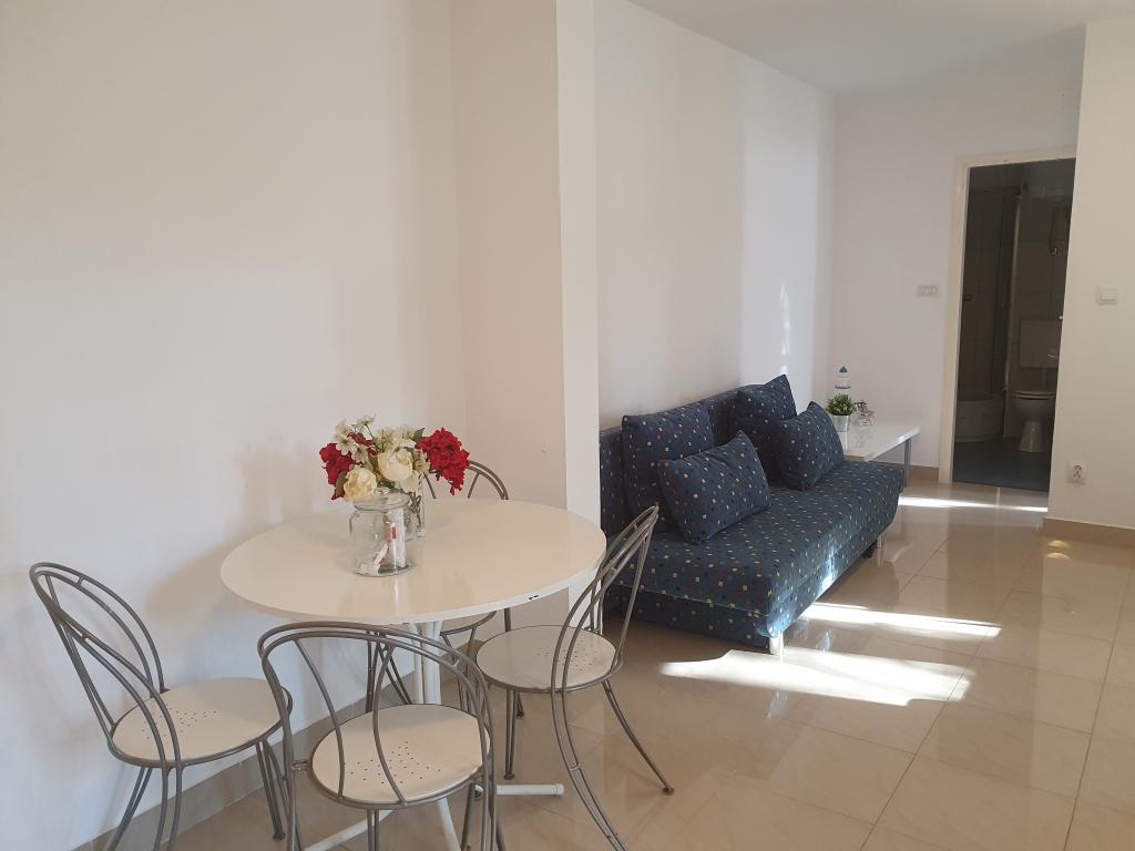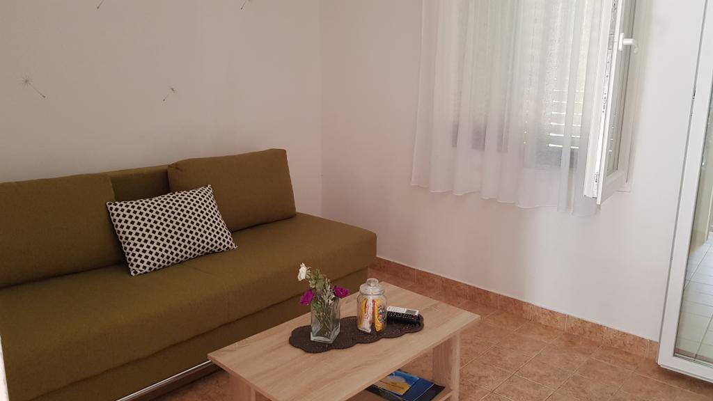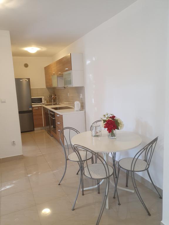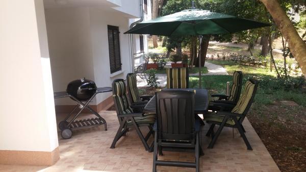 Appartements entièrement équipés et décorés pour un séjour confortable pouvant accueillir jusqu'à 6 personnes, situés dans une pinède. Les appartements se trouvent à 3 minutes à pied de la mer et d'une belle plage accessible à travers une pinède. Les appartements se composent de deux chambres - une avec un lit double et une avec deux lits simples, un salon avec un canapé-lit et une télévision LCD, une salle à manger (appartement plus grand - créé en adaptant deux appartements plus petits en un seul grand appartement de 60m2), une salle de bain, une cuisine complète avec des appareils tels qu'une bouilloire, une machine à café (machine à laver et vaisselle dans le plus grand appartement) et une terrasse, avec la possibilité d'utiliser un barbecue. Chacun de nos appartements est équipé du linge de lit, des serviettes, des ustensiles de cuisine et des appareils électroménagers nécessaires au bon déroulement de votre séjour. L'environnement global (pinède, proximité et disposition de la plage et de la mer, protection de la promenade de la route) représente un environnement idéal pour la détente et des vacances en famille avec de jeunes enfants ou un animal de compagnie.