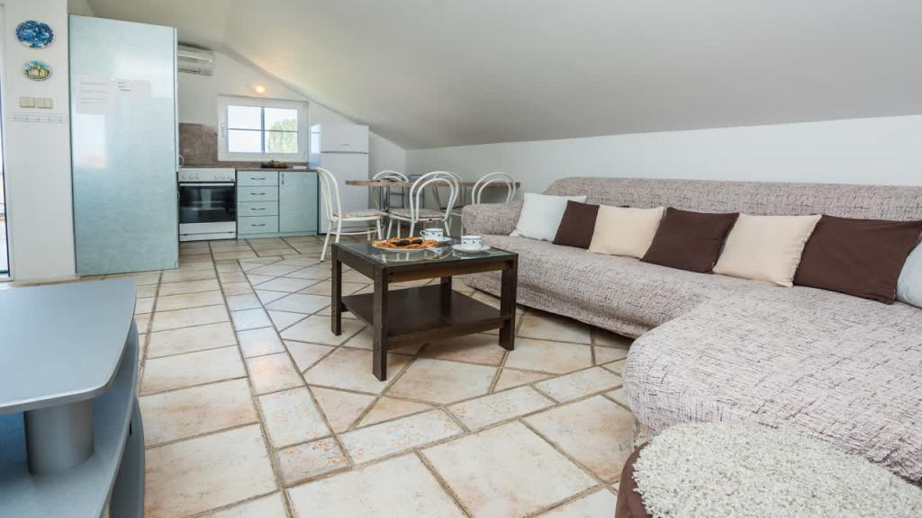 Je voudrais féliciter Mme Gordana et M. Zvonko, des hôtes extrêmement gentils et toujours à votre service. L'appartement est propre, dispose de deux chambres, est assez grand. La salle de bain a une machine à laver, des serviettes.. dans la cuisine il y a un lave-vaisselle (même des tablettes pour lave-vaisselle), dans la cuisine il y a tous les ustensiles nécessaires (pots de différentes tailles, casseroles, bols, assiettes, ustensiles..) et ustensiles (épluche-légumes, planches, un fouet, un maillet à viande, un presse purée) .. Une épicerie est à proximité, ainsi qu'une boulangerie-pâtisserie. La plage est également proche, et qui veut nager ailleurs peut y aller en voiture, mais tout est à 2-3 km. Dans l'ensemble, l'emplacement est génial, l'application géniale et les hôtes encore meilleurs. Les salutations!!