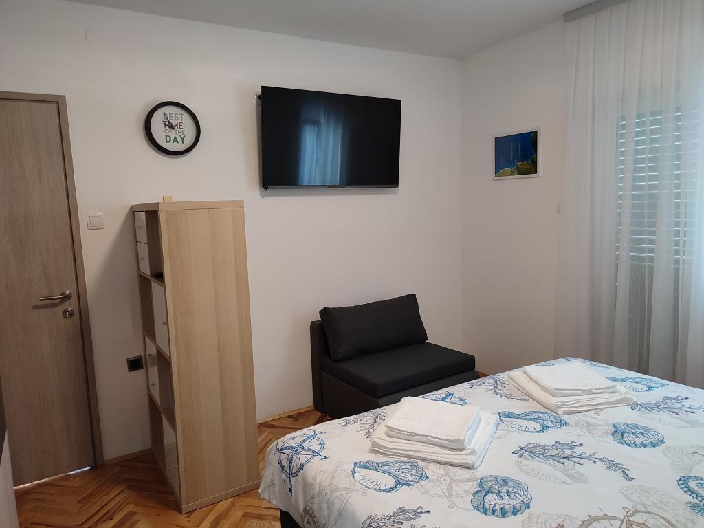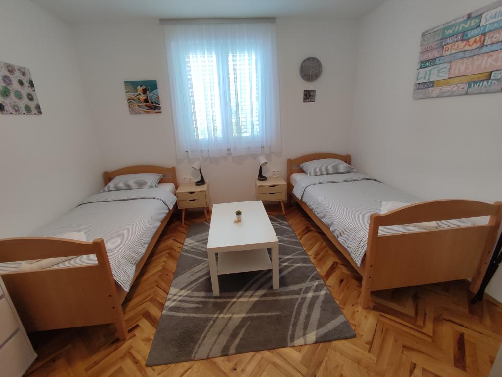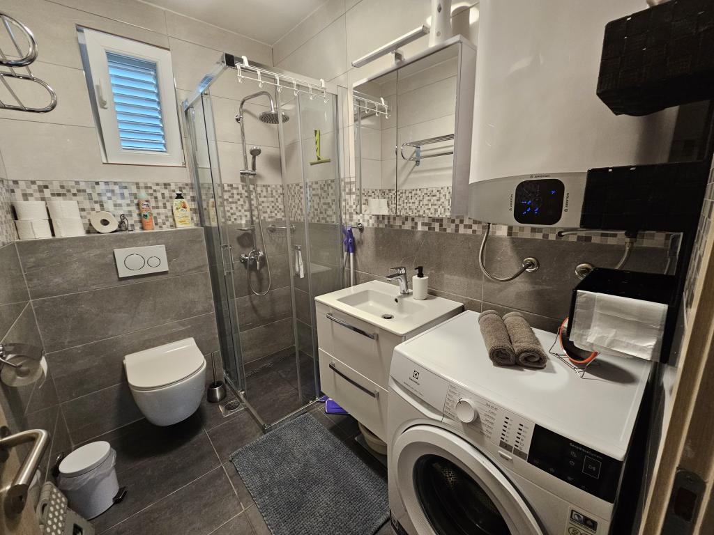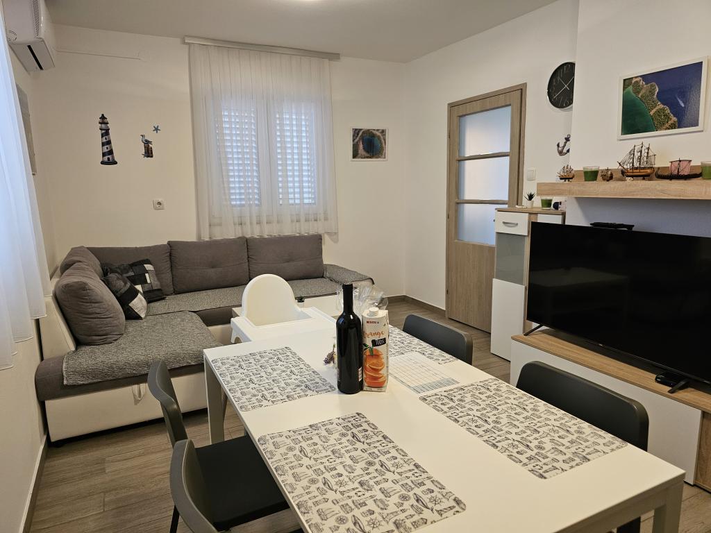 Appartement moderne récemment rénové avec deux chambres. Salle de bain complète avec douche et lave-linge. Cuisine entièrement équipée (plaques à induction, four, lave-vaisselle, micro-ondes, cafetière, grille-pain). Wi-Fi gratuit, Smart TV Android. Grande terrasse ombragée. Accès libre à la cour clôturée et paysagée avec douche solaire. Barbecue à disposition. Parking dans la cour avec possibilité de recharge pour véhicules électriques (sur réservation). Proche de la plage. Belle promenade de plusieurs kilomètres longeant le front de mer et reliant les villages de Vrsi-Mulo et Zukve. Restaurants et bars bordent la promenade.