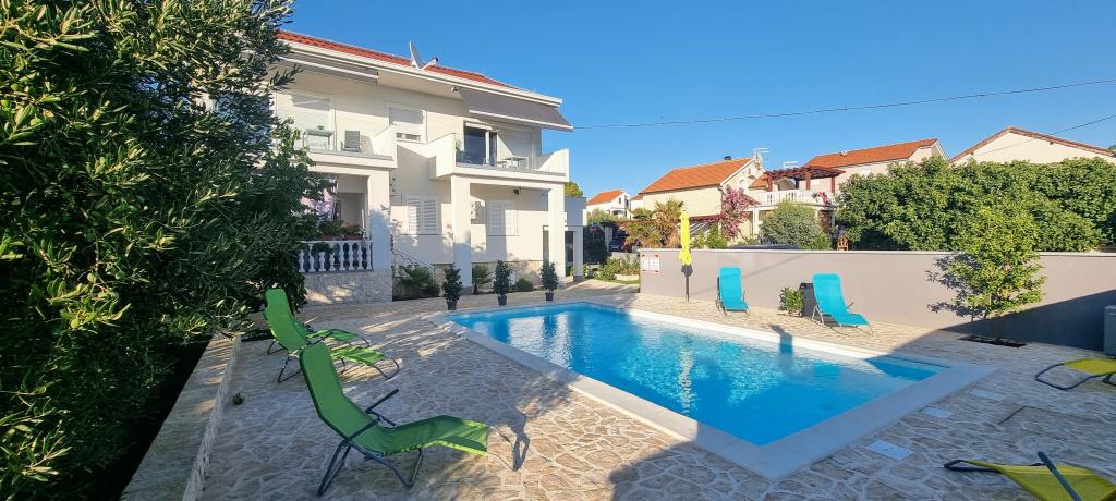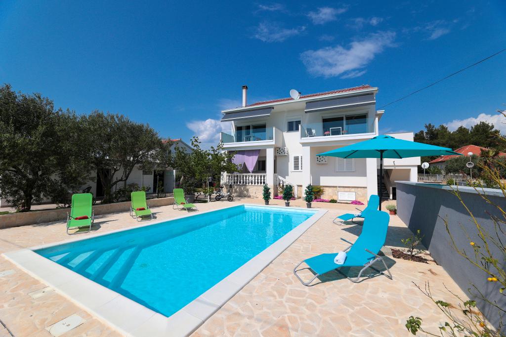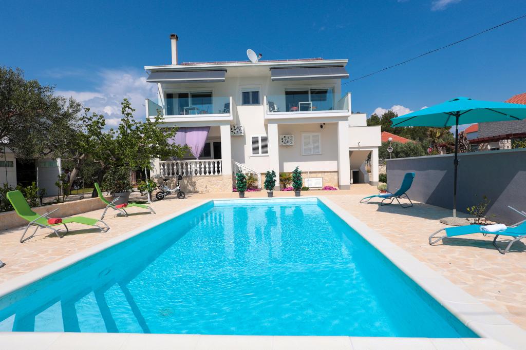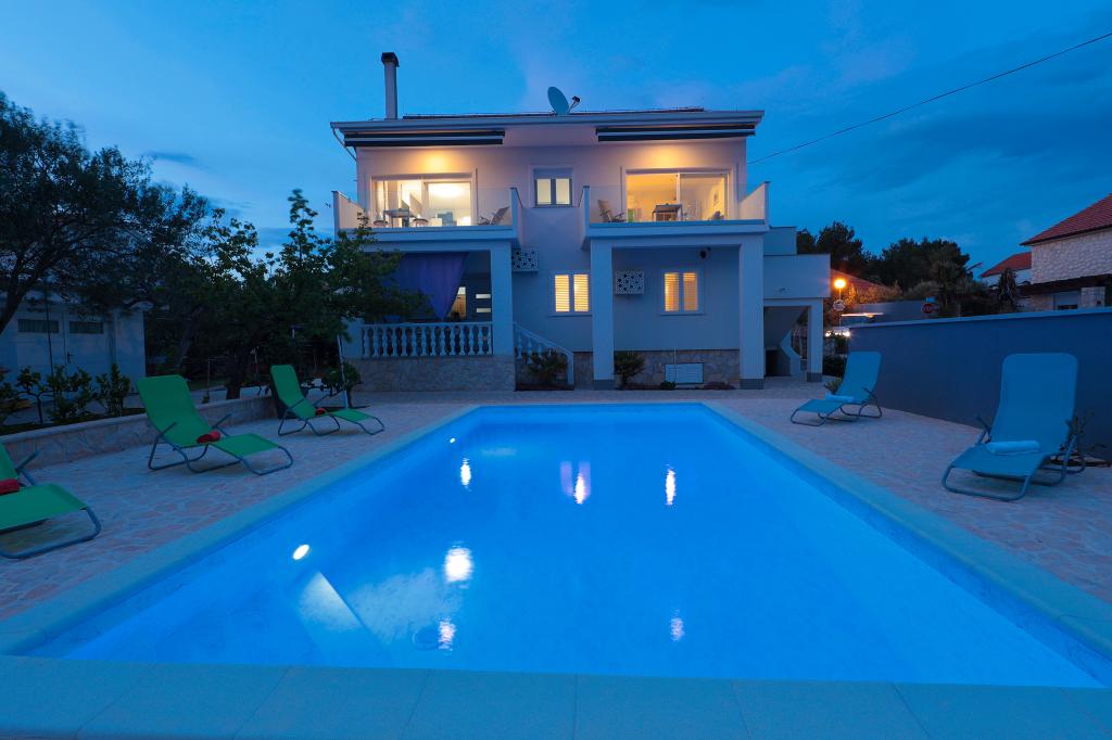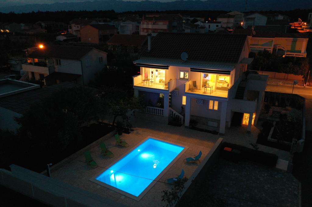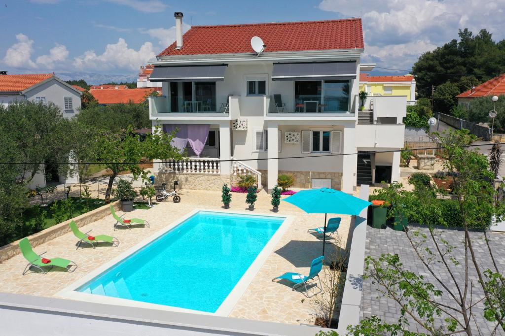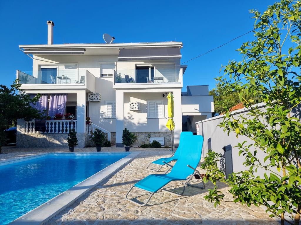 Notre maison est située dans un très beau et très calme quartier de la ville pittoresque de Vrsi. Un paysage magnifique, une nature magnifique, une culture intéressante et un climat sain sont les caractéristiques qui nous distinguent des autres endroits. La plage principale est très proche de notre maison et peut être atteinte par une courte promenade (80 mètres ou 2 minutes à pied). La maison dispose de deux appartements modernes construits en 2019. Le plus grand appartement "Alan 3" a 4 étoiles et est idéal pour les familles nombreuses jusqu'à 6 personnes, tandis que le plus petit appartement "Alan 2" avec 3 étoiles est destiné aux familles avec jusqu'à deux enfants ou peut devenir un havre romantique pour les couples en aimer. Chaque appartement dispose d'un balcon donnant sur la magnifique baie et d'une grande piscine chauffée entourée d'un côté par un magnifique jardin paysager avec des fleurs et des agrumes, et de l'autre par une petite oliveraie qui offre une ombre agréable lors des chaudes journées d'été. La terrasse avec des sièges offre des moments de détente pendant la journée ou les soirées d'été.