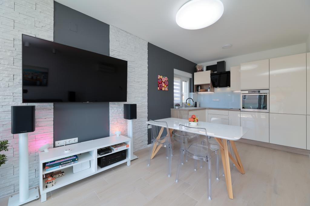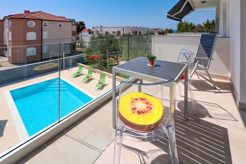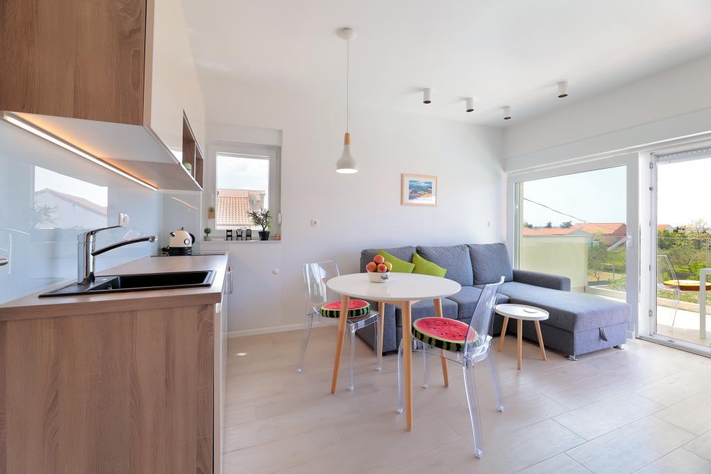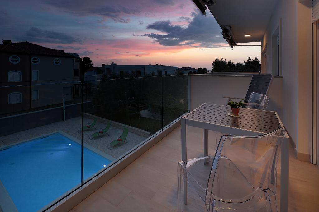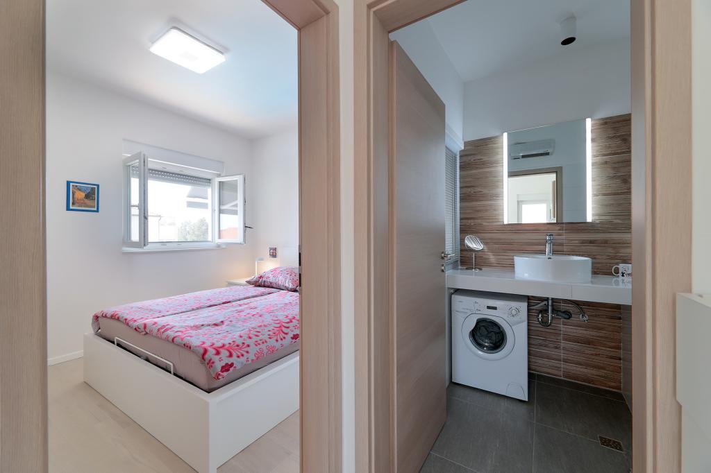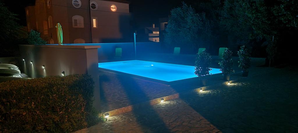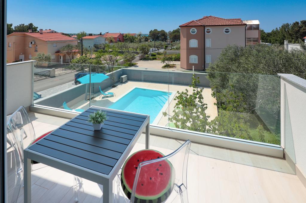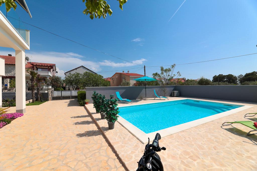 Notre maison est située dans un très beau et très calme quartier de la ville pittoresque de Vrsi. Un paysage magnifique, une nature magnifique, une culture intéressante et un climat sain sont les caractéristiques qui nous distinguent des autres endroits. La plage principale est très proche de notre maison et peut être atteinte par une courte promenade (80 mètres ou 2 minutes à pied). La maison dispose de deux appartements modernes construits en 2019. Le plus grand appartement "Alan 3" a 4 étoiles et est idéal pour les familles nombreuses jusqu'à 6 personnes, tandis que le plus petit appartement "Alan 2" avec 3 étoiles est destiné aux familles avec jusqu'à deux enfants ou peut devenir un havre romantique pour les couples en aimer. Chaque appartement dispose d'un balcon donnant sur la magnifique baie et d'une grande piscine chauffée entourée d'un côté par un magnifique jardin paysager avec des fleurs et des agrumes, et de l'autre par une petite oliveraie qui offre une ombre agréable lors des chaudes journées d'été. La terrasse avec des sièges offre des moments de détente pendant la journée ou les soirées d'été.